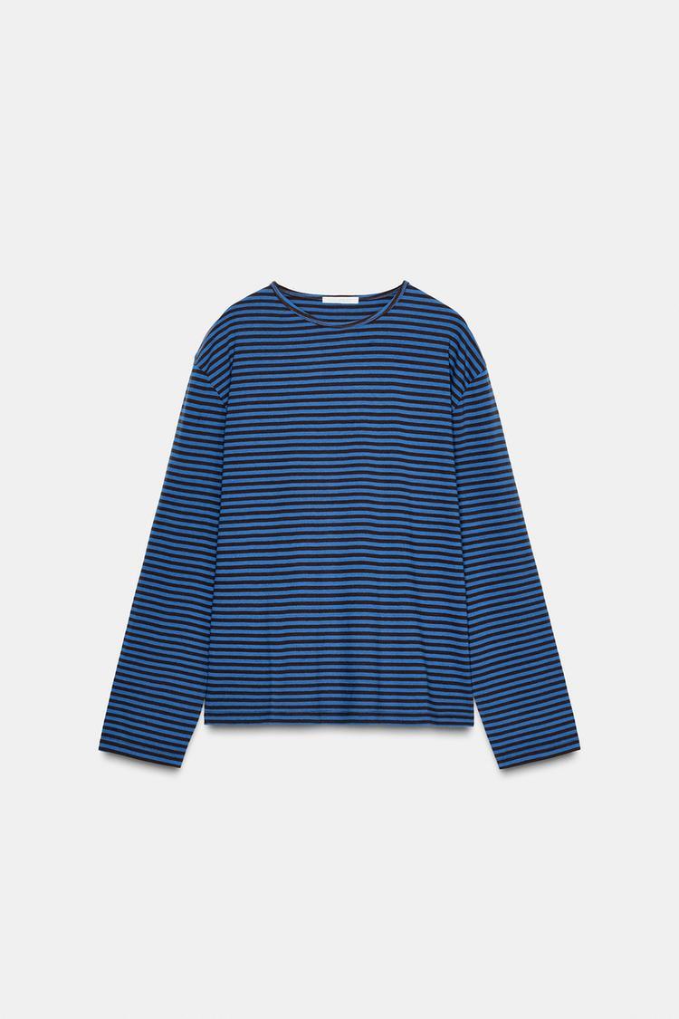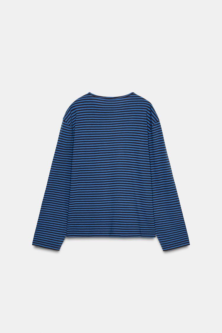 ZARA ФУТБОЛКА В ПОЛОСКУ С ДЛИННЫМИ РУКАВАМИ, КОРИЧНЕВО-СИНИЙ