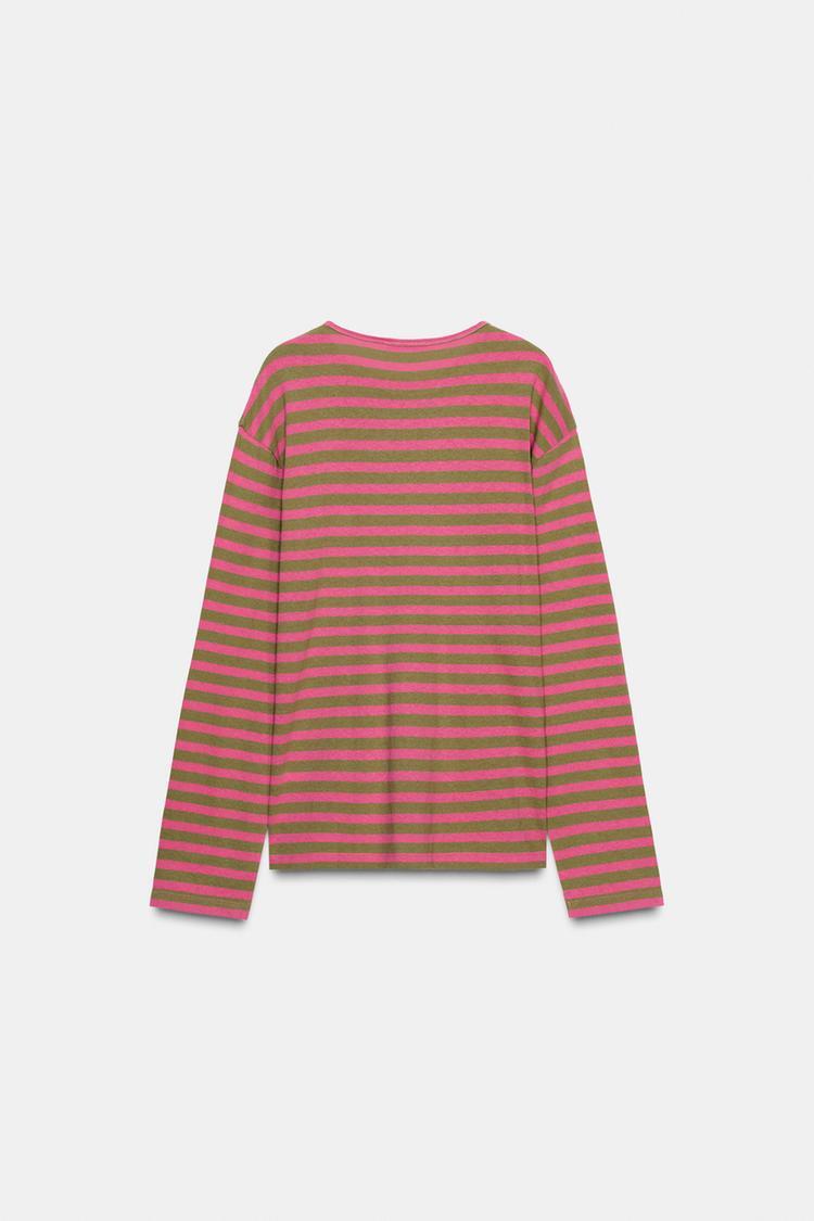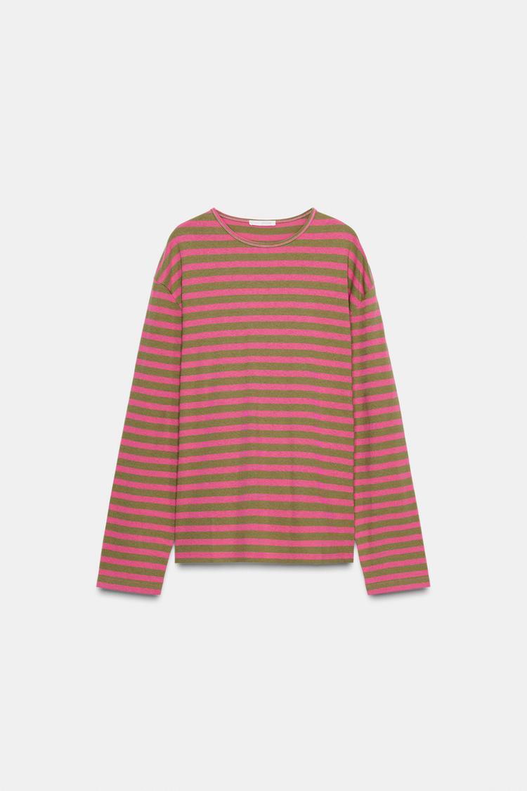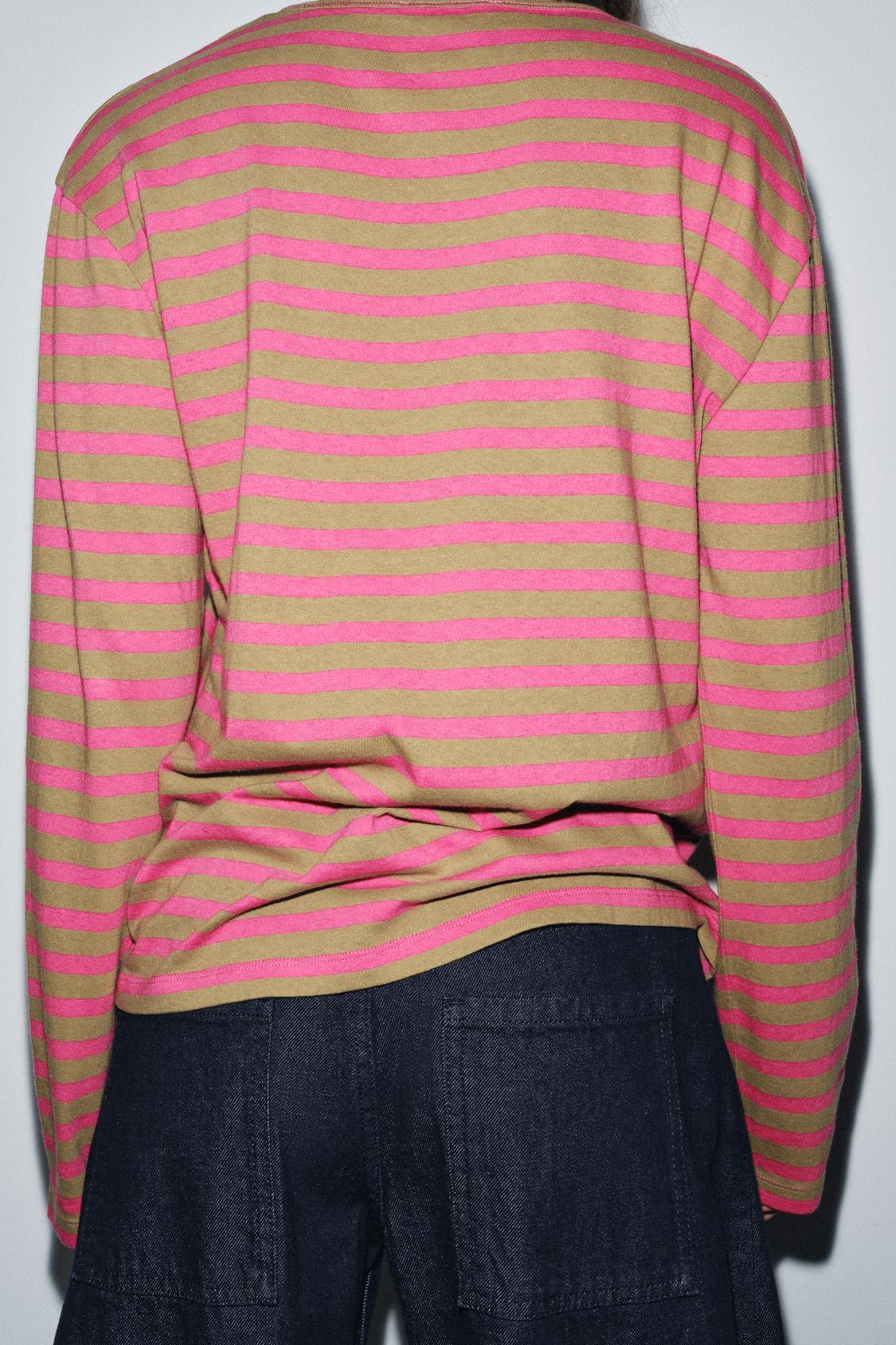 ZARA ФУТБОЛКА В ПОЛОСКУ С ДЛИННЫМИ РУКАВАМИ, ОТТЕНКИ РОЗОВОГО