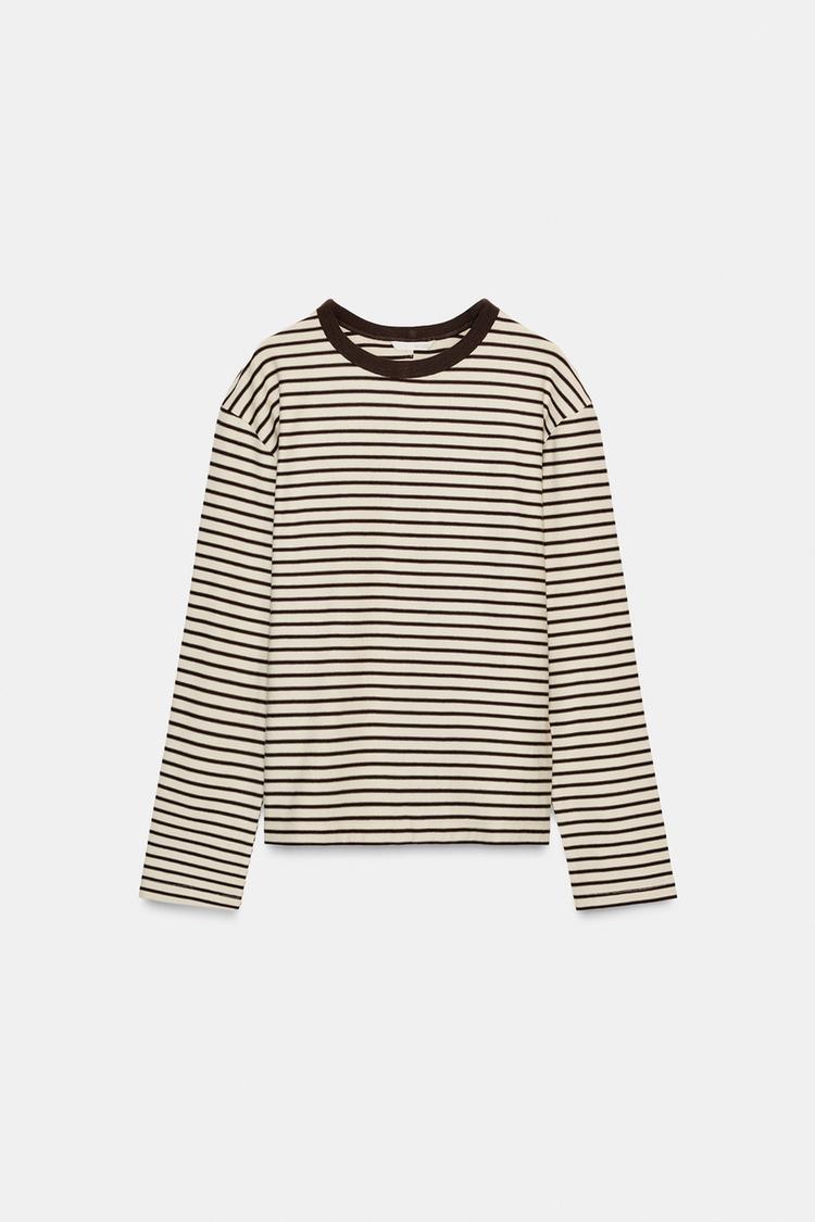ZARA ФУТБОЛКА В ПОЛОСКУ С ДЛИННЫМИ РУКАВАМИ, В ПОЛОСКУ