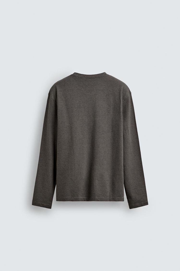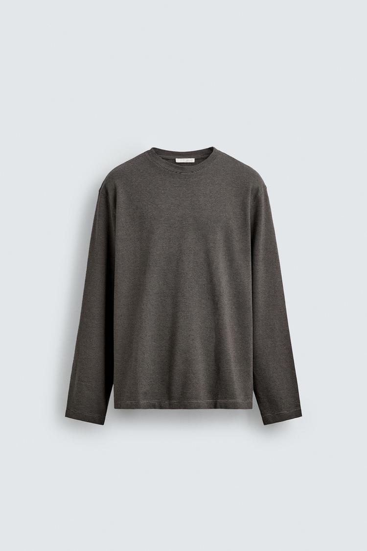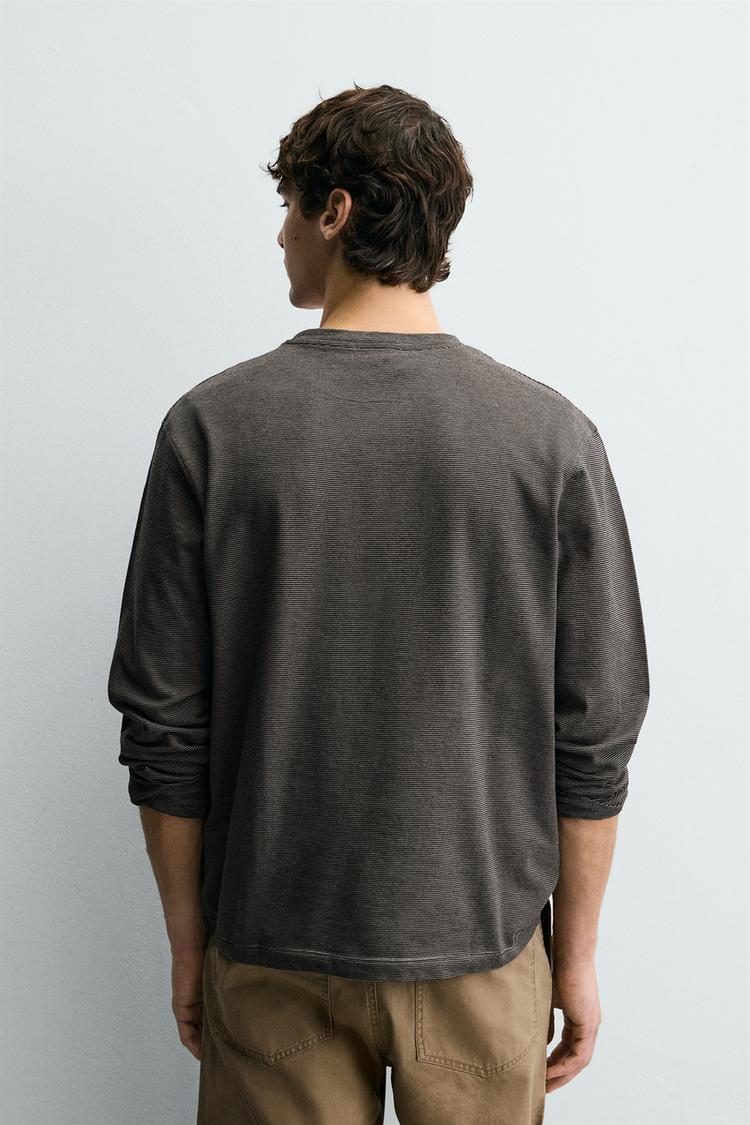 ZARA ФУТБОЛКА В ПОЛОСКУ С ДЛИННЫМИ РУКАВАМИ, ТЕМНО-КОРИЧНЕВЫЙ