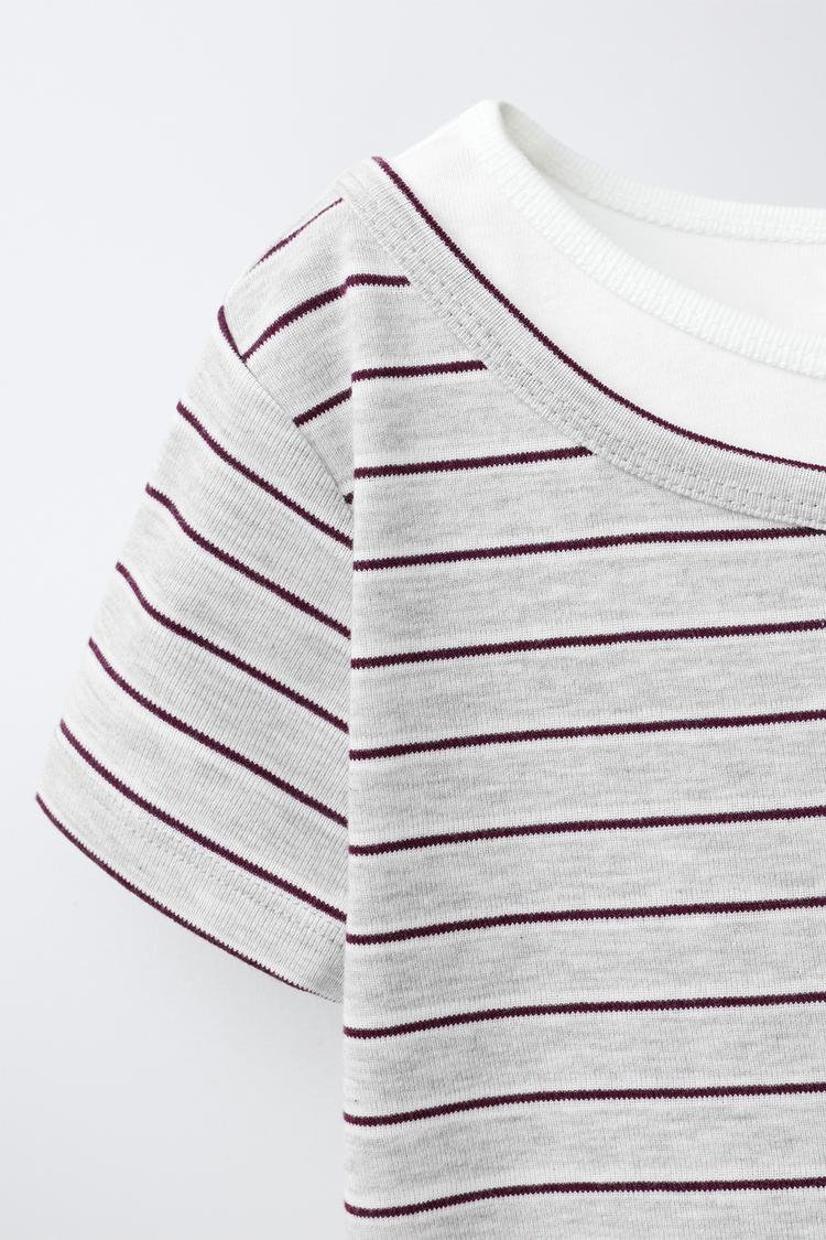 ZARA ФУТБОЛКА В ПОЛОСКУ С ДВОЙНЫМ ВОРОТНИКОМ, СЕРЫЙ МЕЛАНЖ