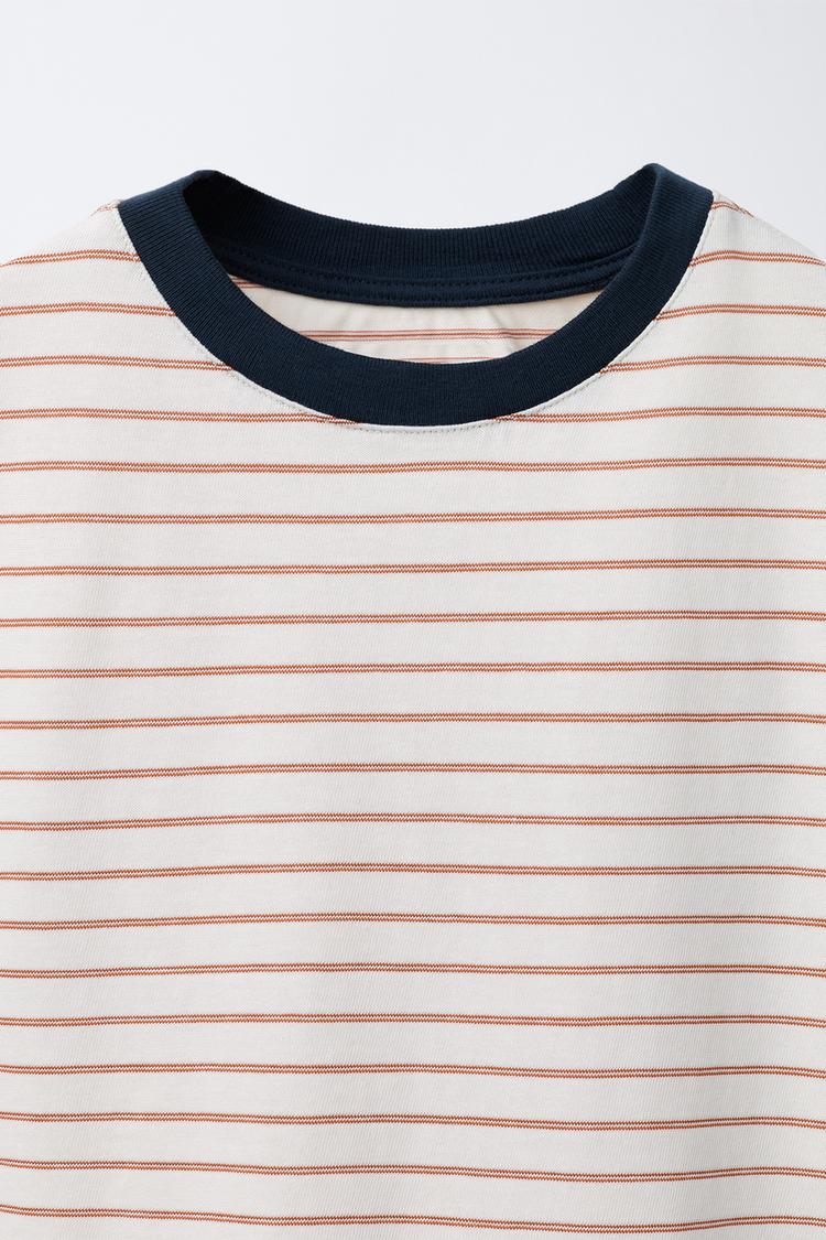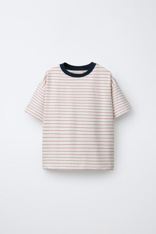 ZARA ФУТБОЛКА В ПОЛОСКУ С КОНТРАСТНЫМ ВОРОТНИКОМ, ПОЛОСКИ