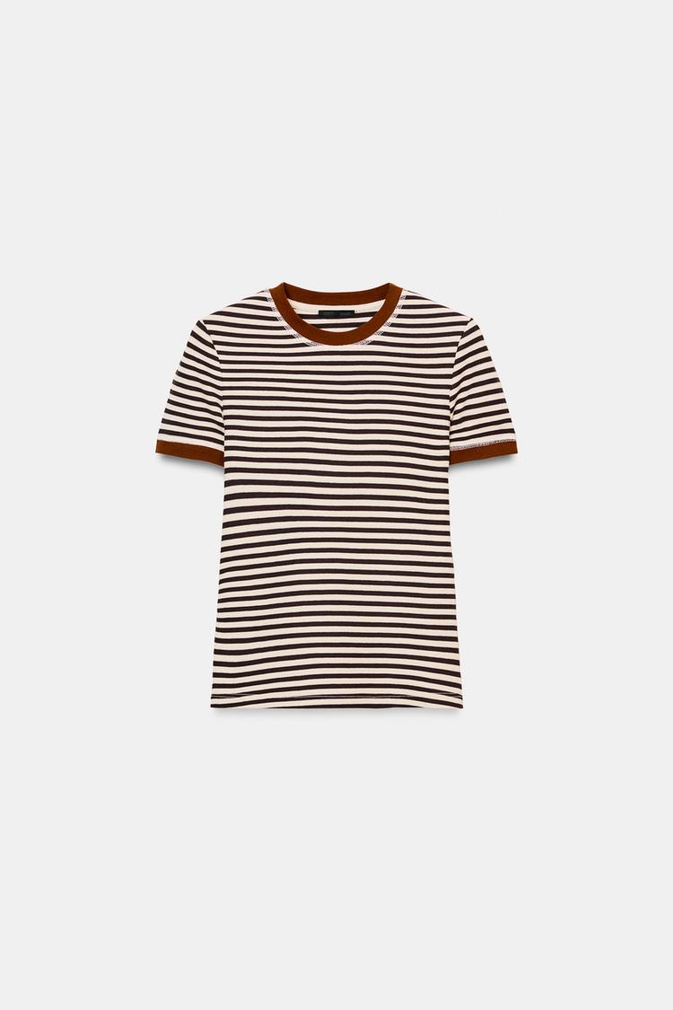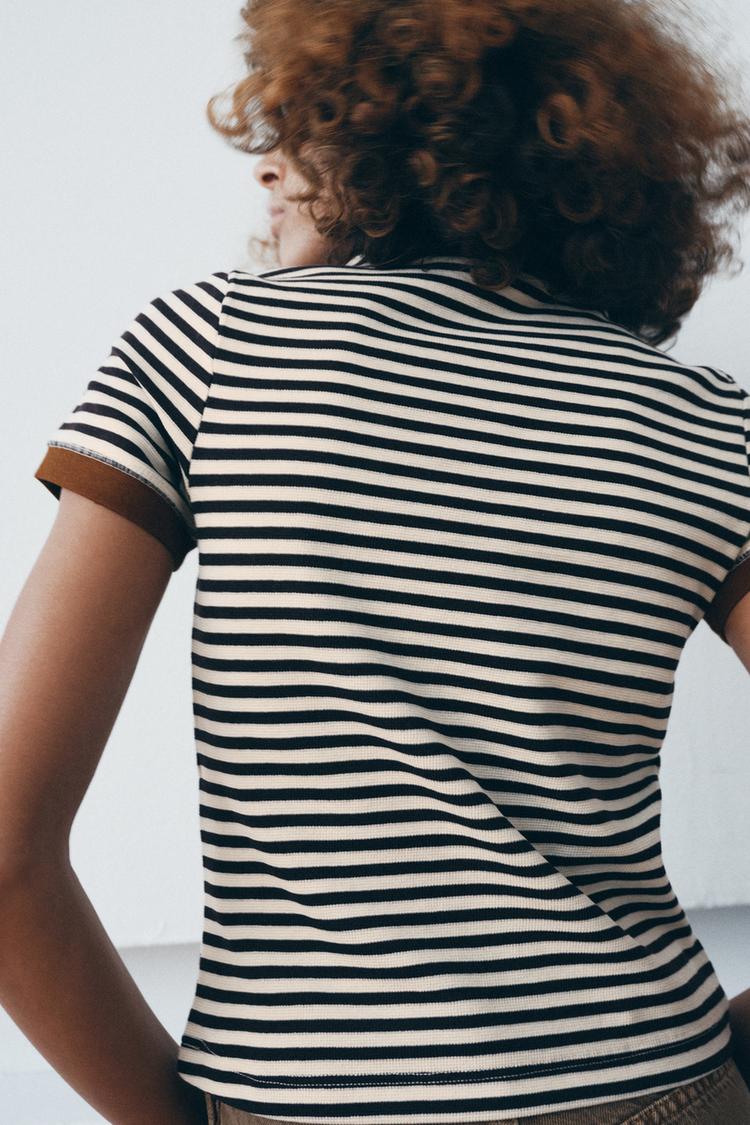 ZARA ФУТБОЛКА В ПОЛОСКУ С КОРОТКИМ РУКАВОМ, ПОЛОСКИ