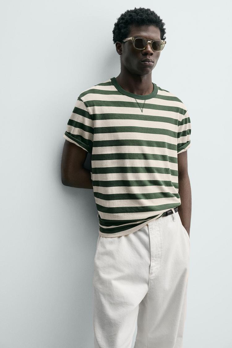 ZARA ФУТБОЛКА В ПОЛОСКУ С КОРОТКИМИ РУКАВАМИ, ПОЛОСКИ