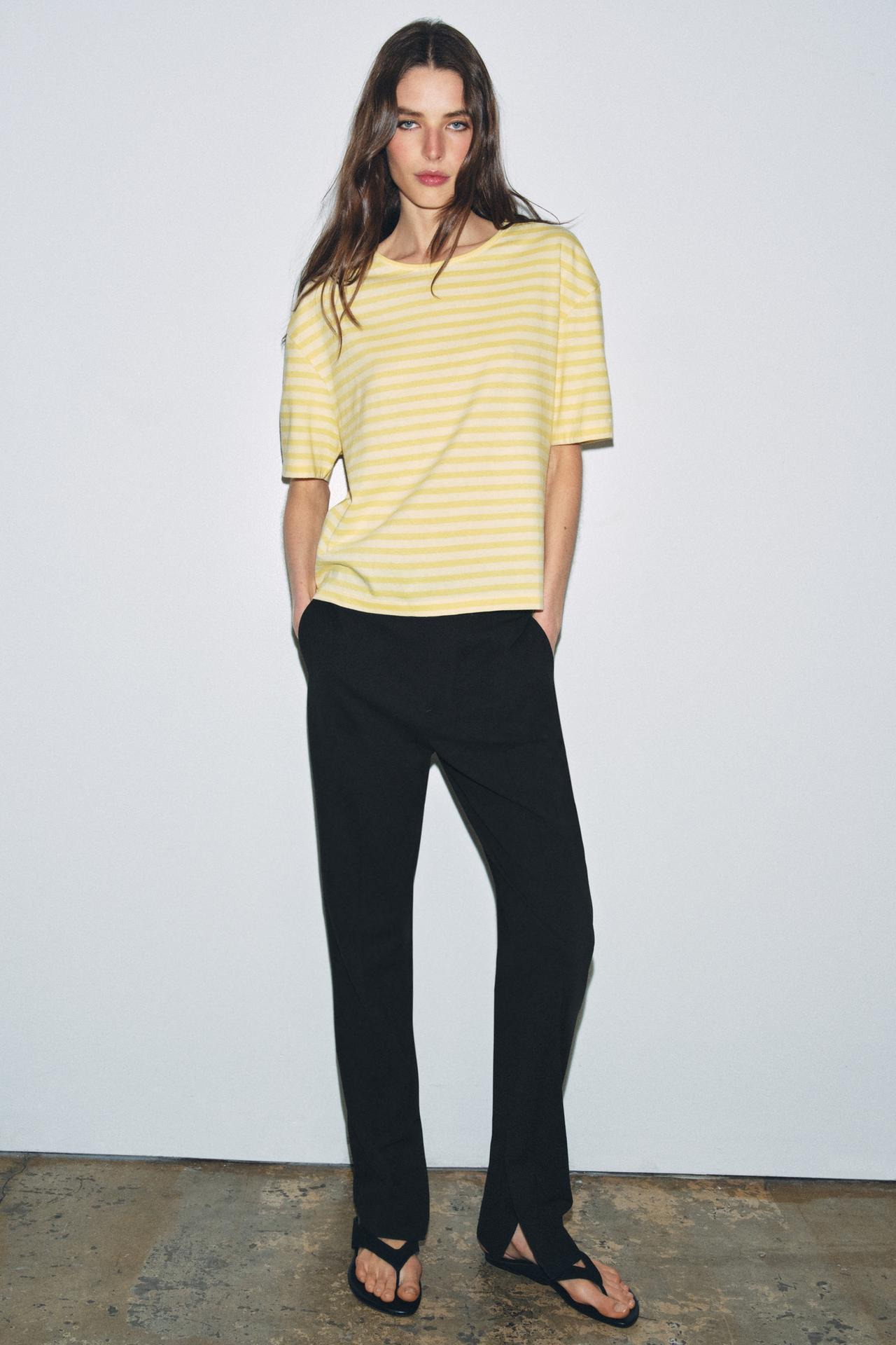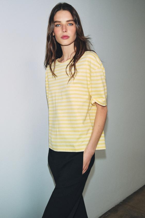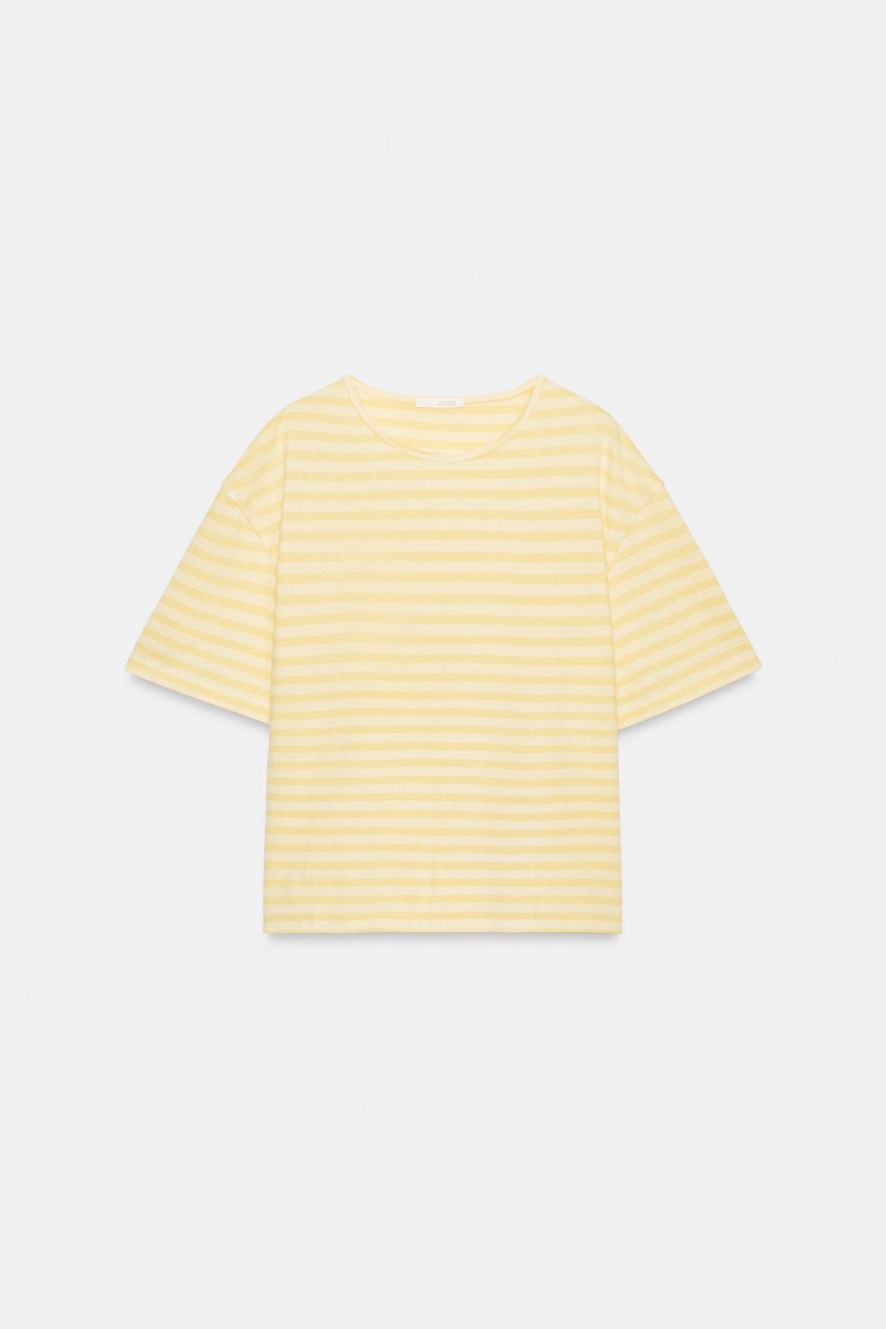 ZARA ФУТБОЛКА В ПОЛОСКУ С КОРОТКИМИ РУКАВАМИ, ЖЕЛТЫЙ