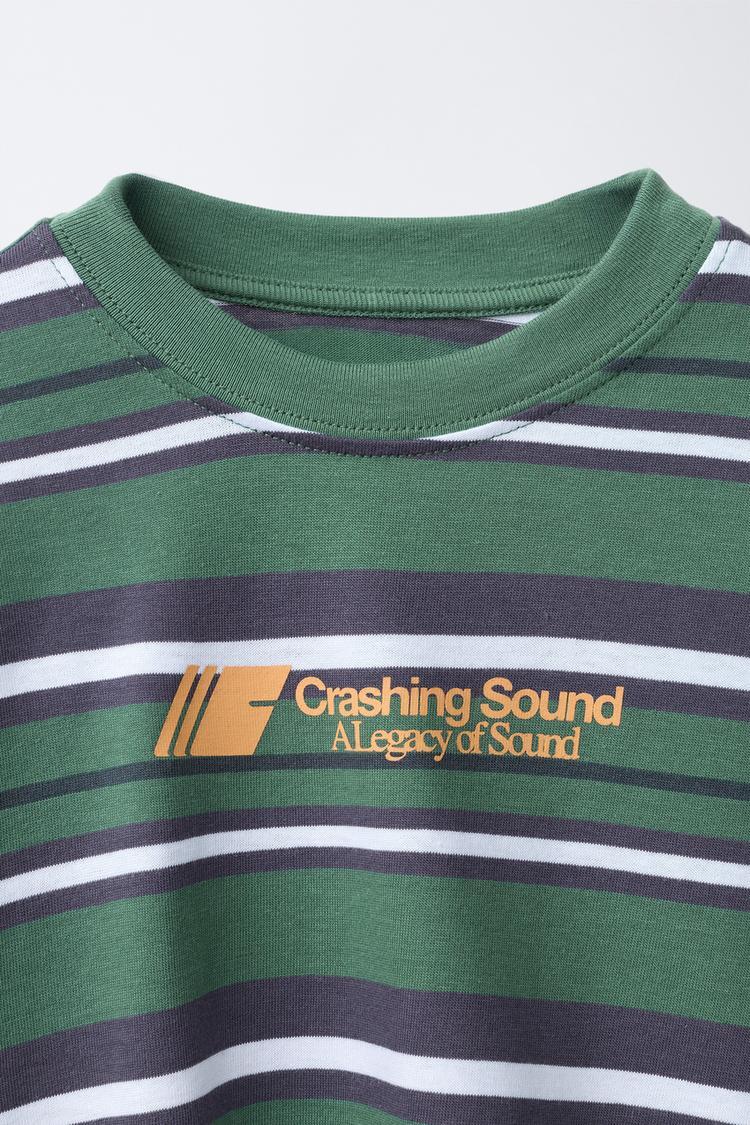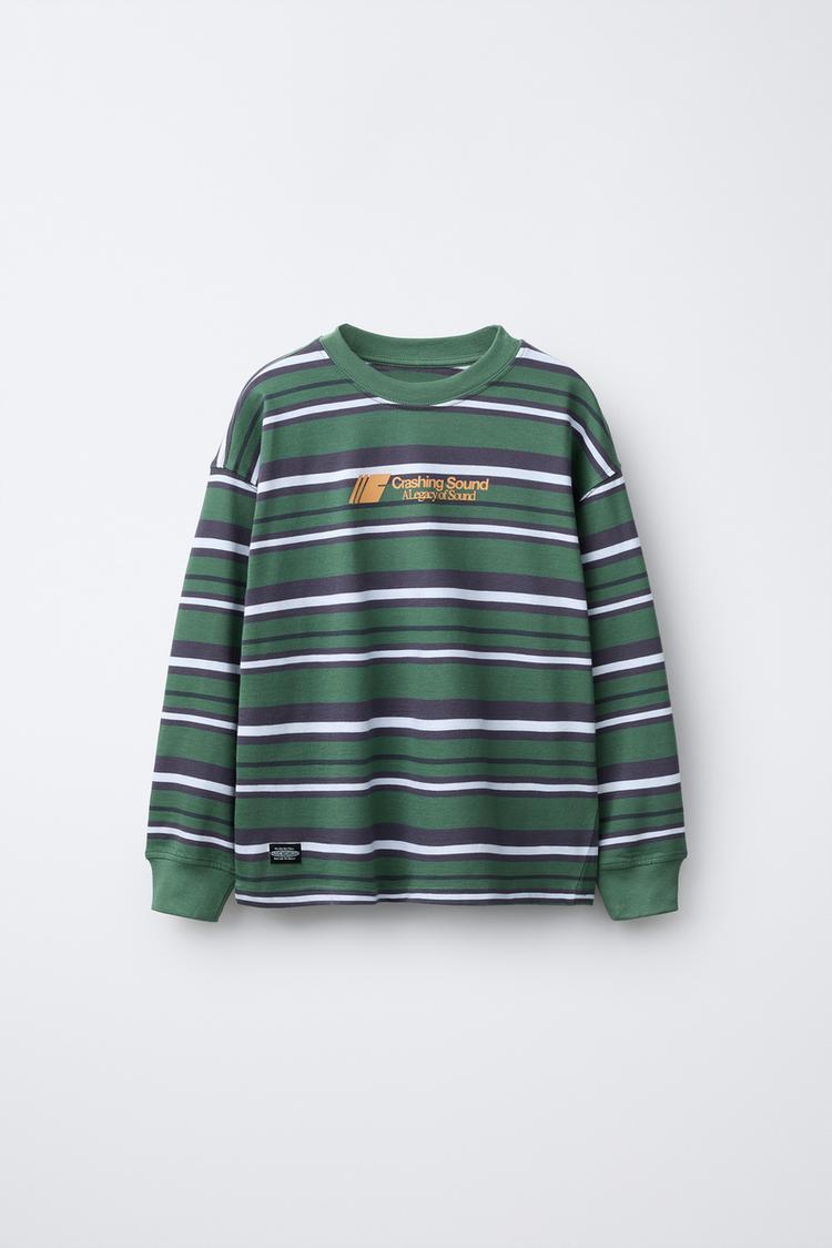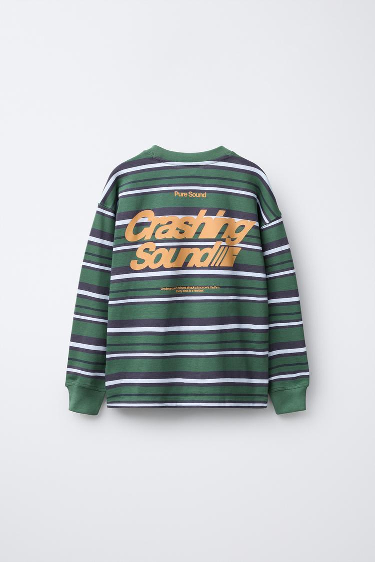 ZARA ФУТБОЛКА В ПОЛОСКУ С НАДПИСЬЮ ИЗ ТКАНИ, ЗЕЛЕНЫЙ