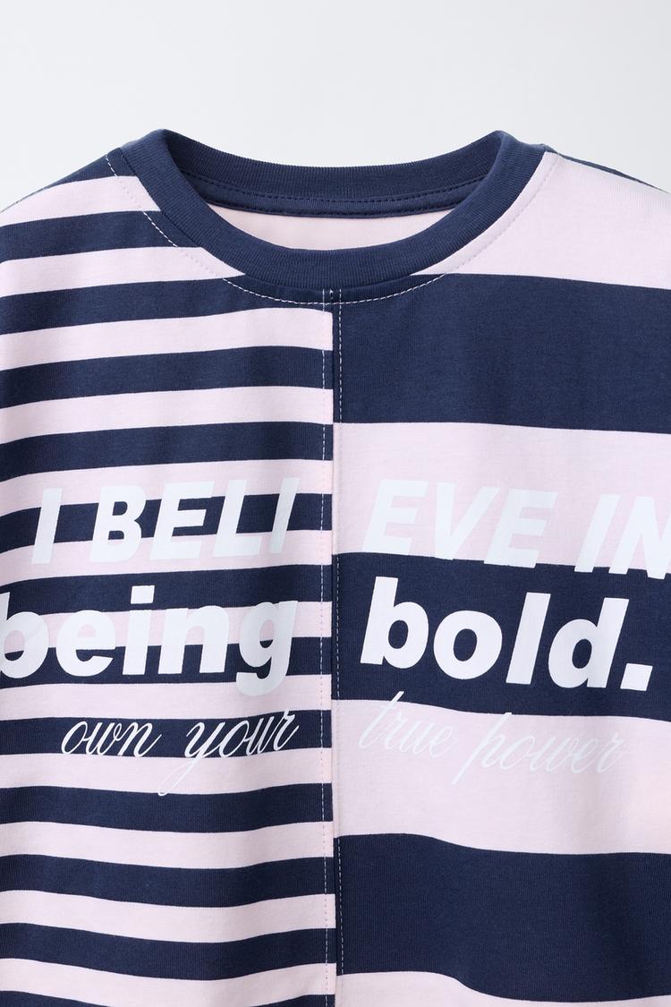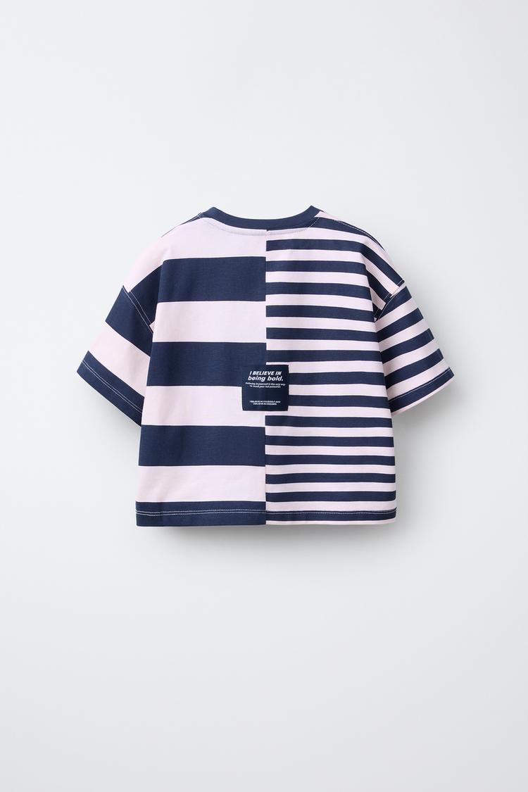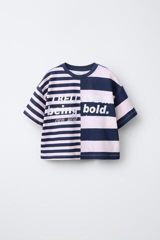 ZARA ФУТБОЛКА В ПОЛОСКУ С НАДПИСЬЮ, ТЕМНО-СИНИЙ/БЕЛЫЙ