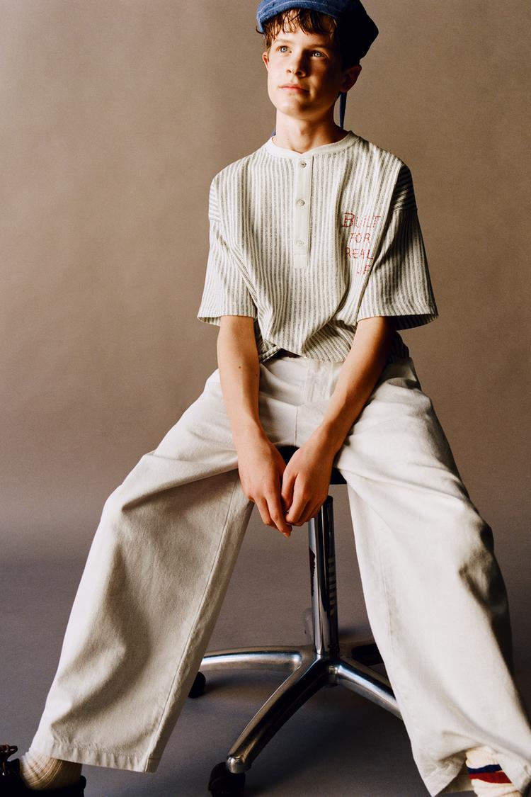 ZARA ФУТБОЛКА В ПОЛОСКУ С НАШИВКОЙ, ПОЛОСКИ