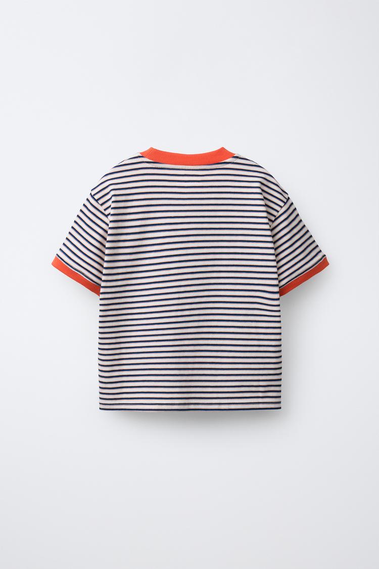 ZARA ФУТБОЛКА В ПОЛОСКУ С НАШИВКОЙ, ПОЛОСКИ