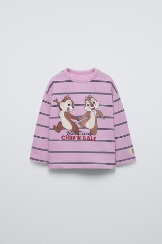 ZARA ФУТБОЛКА В ПОЛОСКУ С ПРИНТОМ CHIP AND DALE DISNEY ©, СВЕТЛАЯ МАЛЬВА