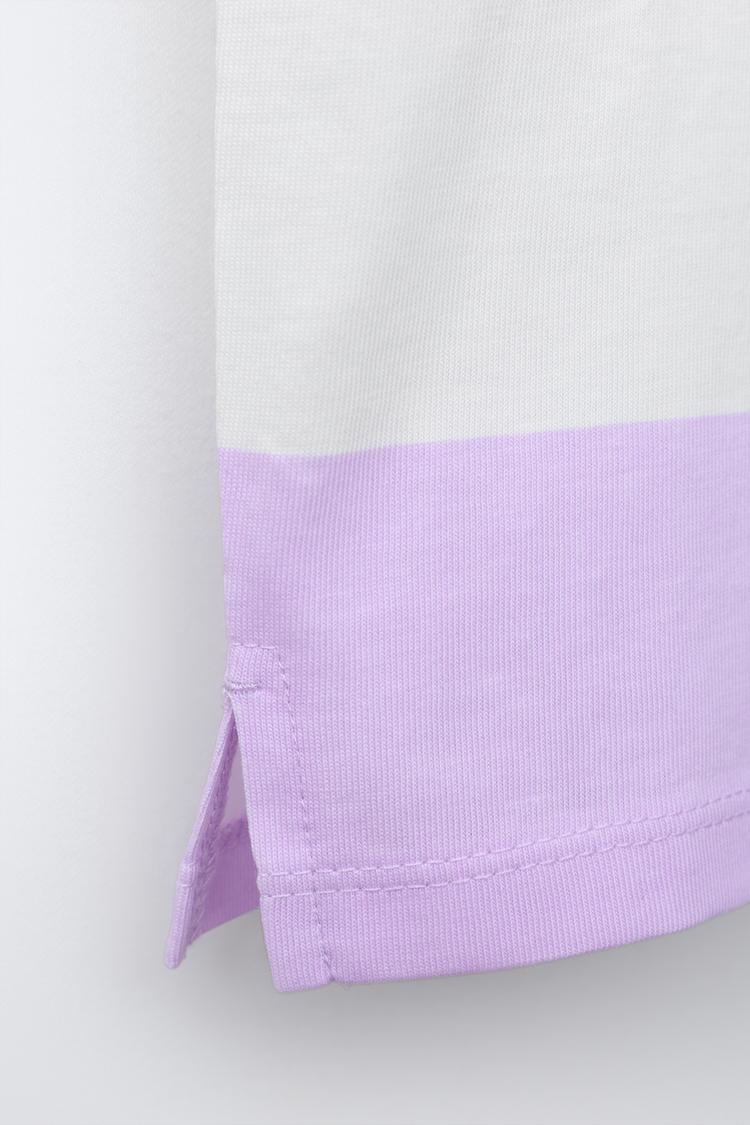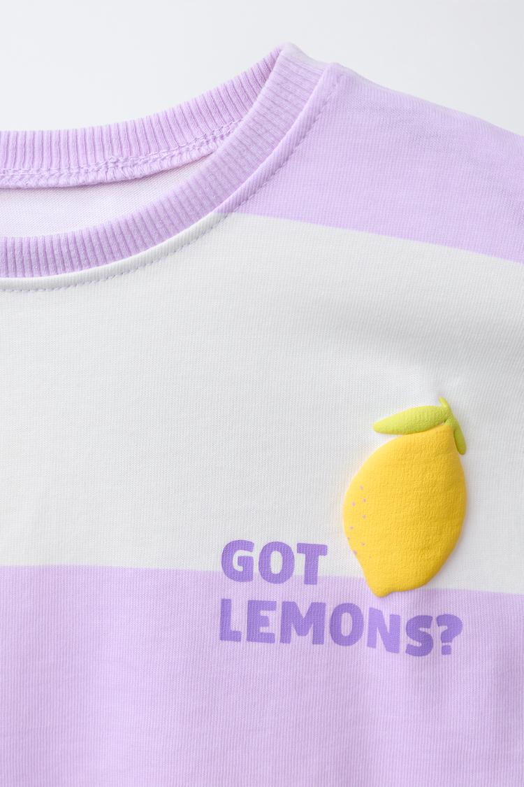 ZARA ФУТБОЛКА В ПОЛОСКУ С РЕЛЬЕФНЫМ ПРИНТОМ ФРУКТОВ, СВЕТЛАЯ МАЛЬВА