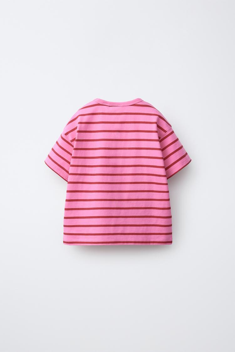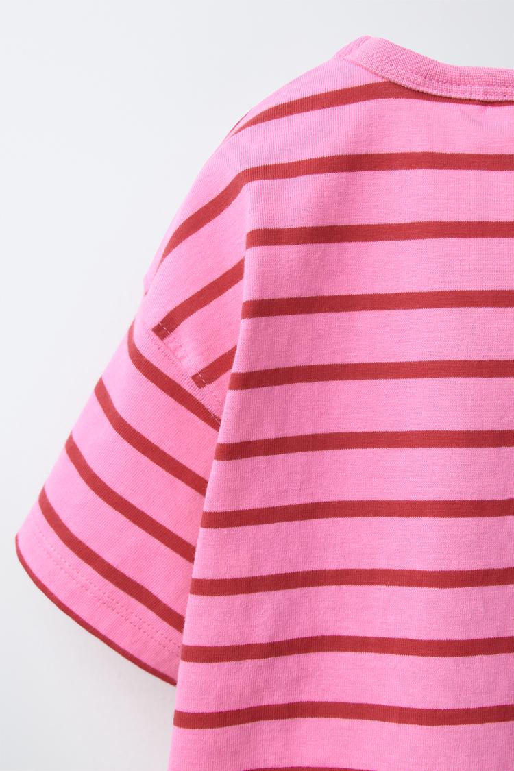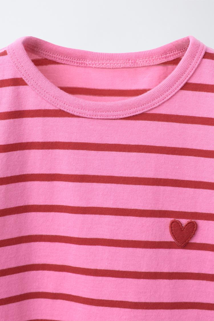 ZARA ФУТБОЛКА В ПОЛОСКУ С ВЫШИТЫМ СЕРДЦЕМ, РОЗОВЫЙ