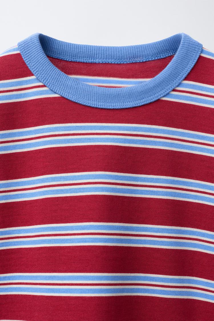ZARA ФУТБОЛКА В ПОЛОСКУ С ВЫШИВКОЙ, КРАСНЫЙ/БЕЛЫЙ