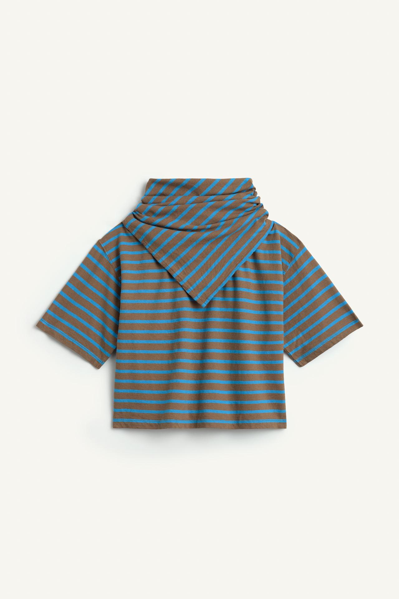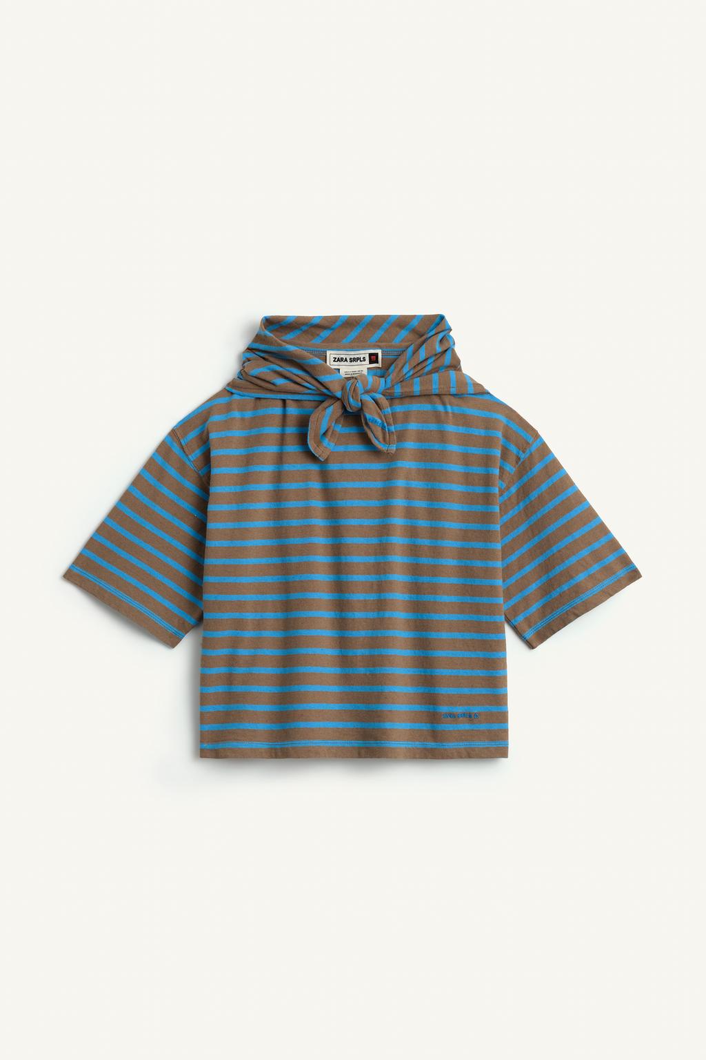 ZARA ФУТБОЛКА В ПОЛОСКУ, СВЕТЛО-ГОЛУБОЙ