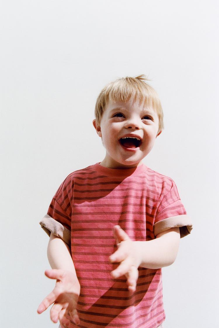 Футболка с круглым вырезом и короткими рукавами. Принт в полоску.