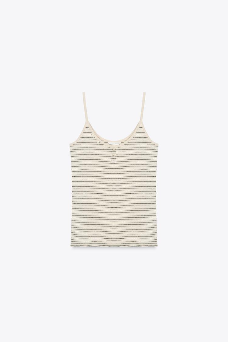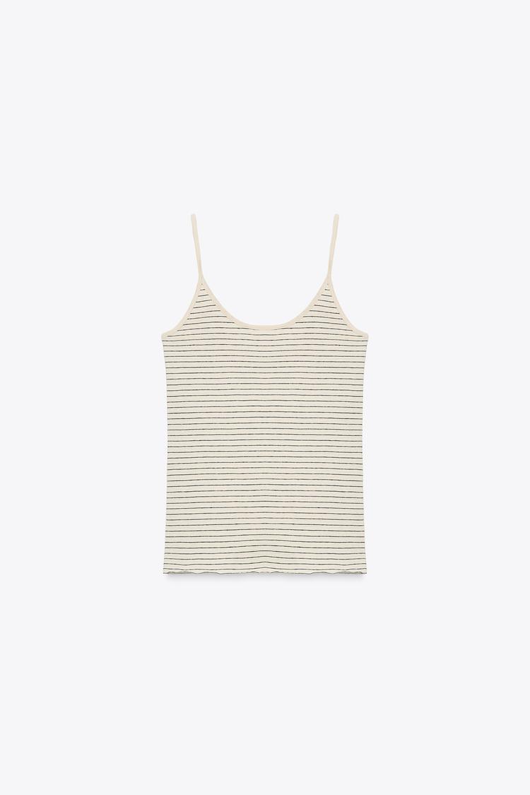 Футболка из смесовой пряжи хлопка и льна (20%). Круглый вырез и тонкие бретели.