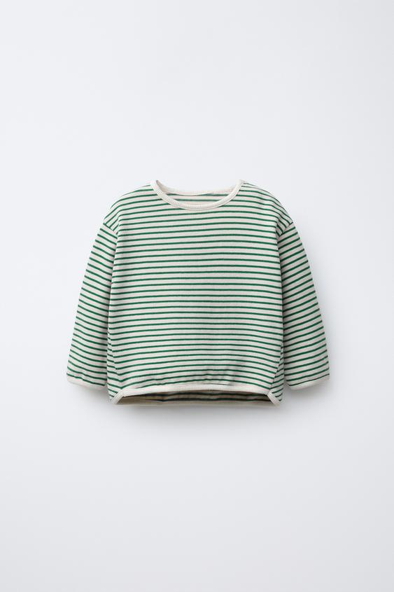 ZARA ФУТБОЛКА В ПОЛОСКУ, ЗЕЛЕНЫЙ