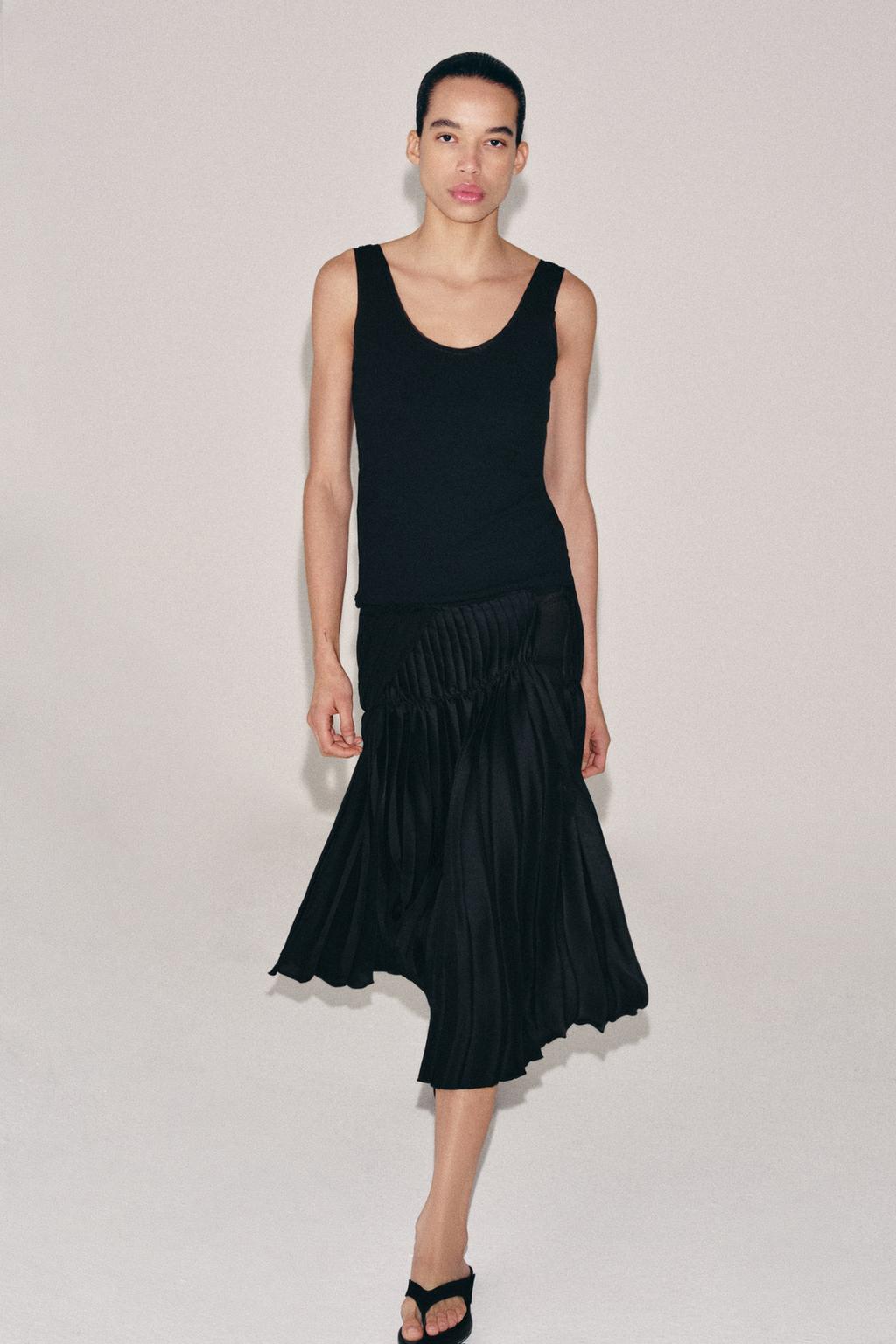 ZARA ФУТБОЛКА В РУБЧИК С БРЕТЕЛЯМИ, ЧЕРНЫЙ