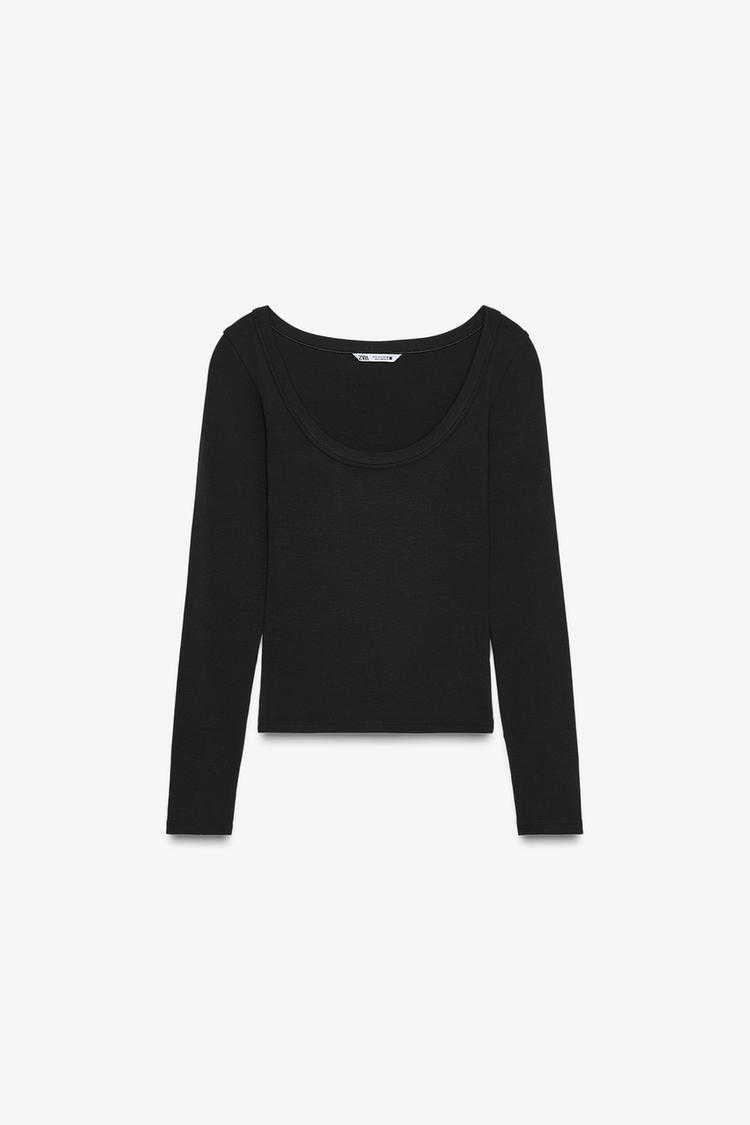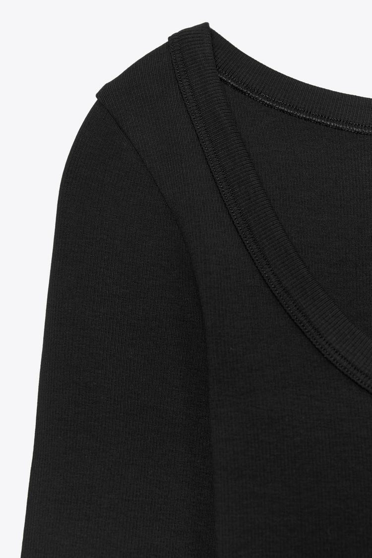 ZARA ФУТБОЛКА В РУБЧИК С ДЛИННЫМИ РУКАВАМИ, ЧЕРНЫЙ