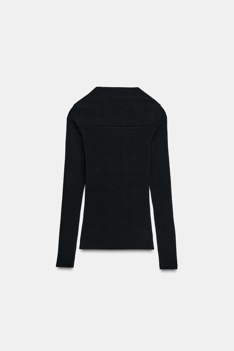 ZARA ФУТБОЛКА В РУБЧИК С ДЛИННЫМИ РУКАВАМИ, ЧЕРНЫЙ
