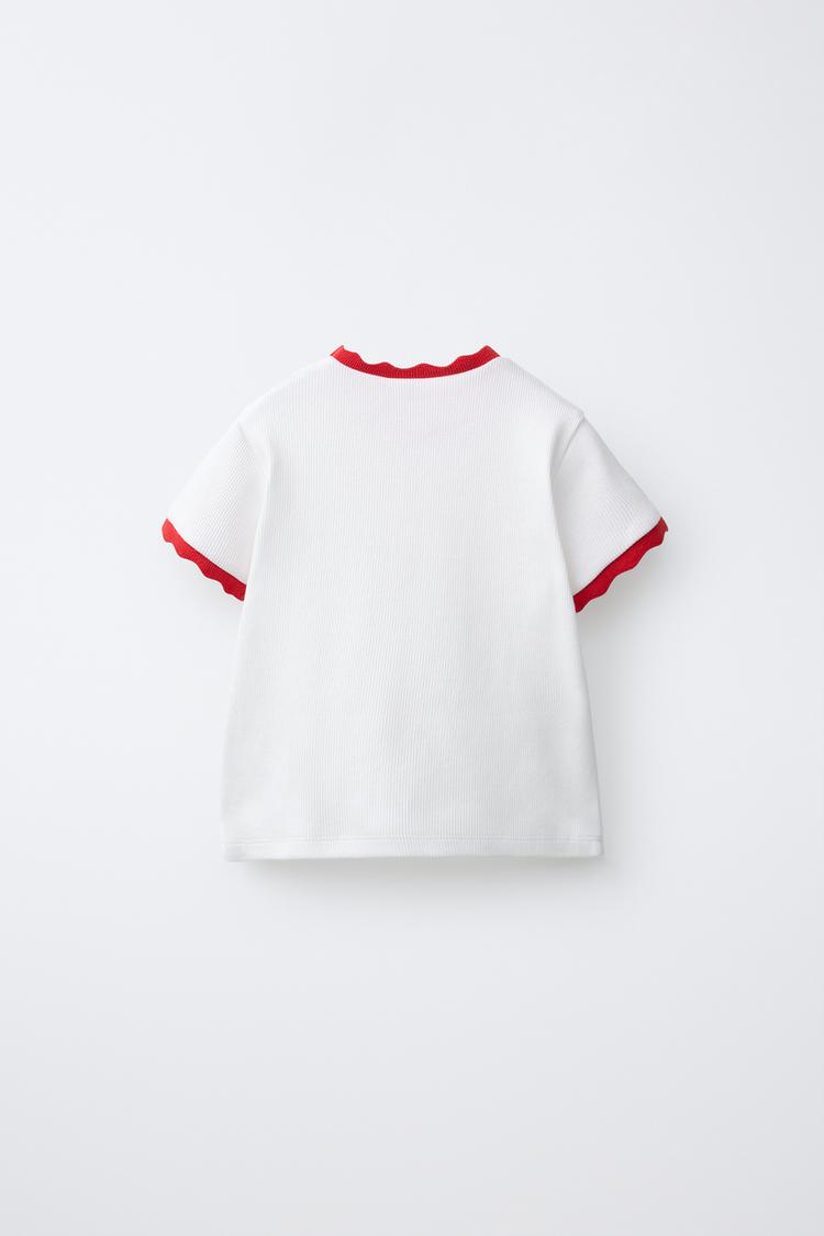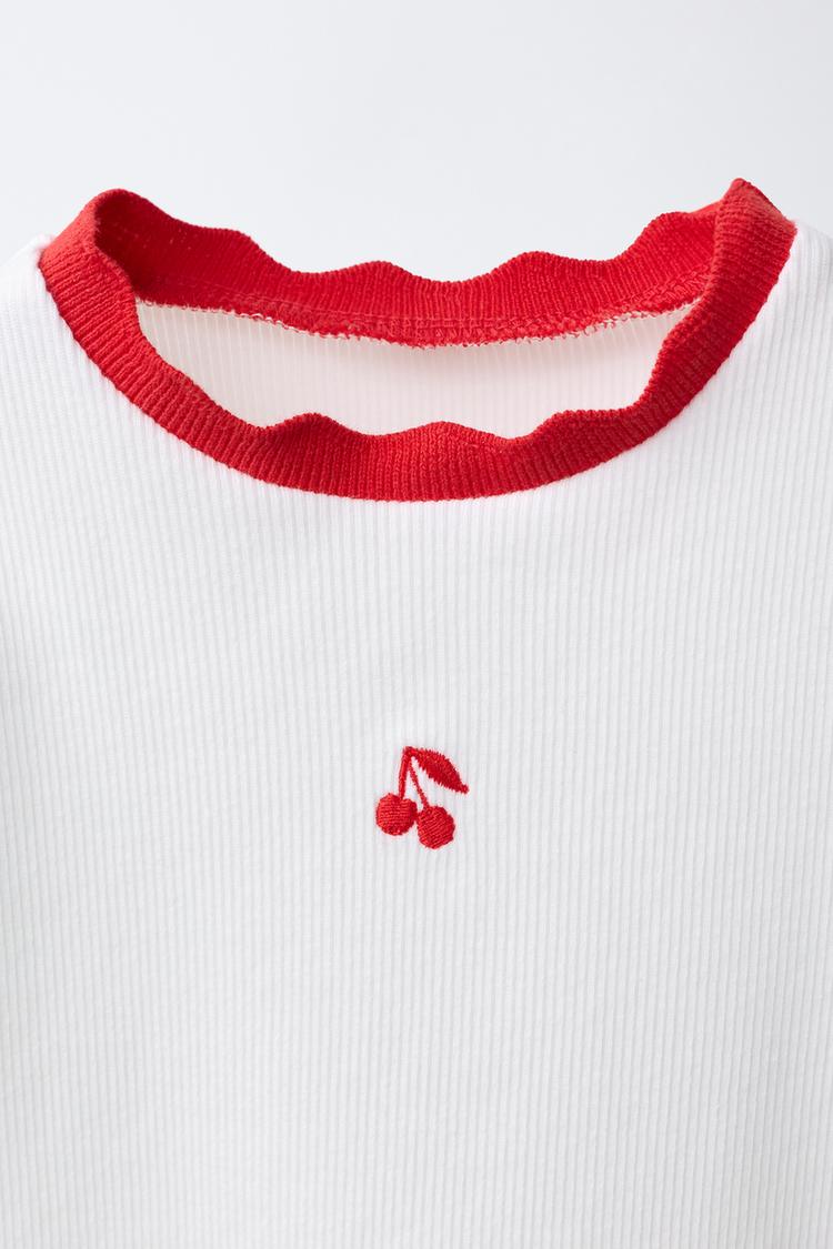 ZARA ФУТБОЛКА В РУБЧИК С КОНТРАСТНОЙ ОТДЕЛКОЙ И ВЫШИВКОЙ, КРАСНЫЙ