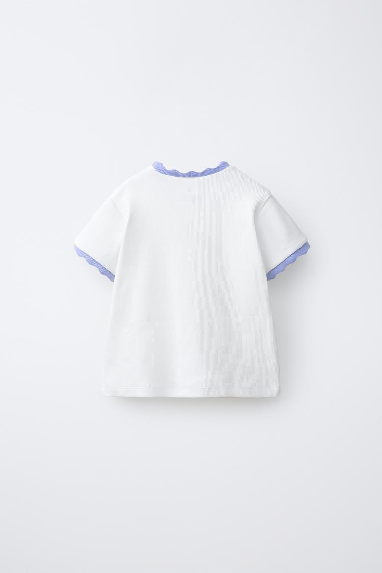 ZARA ФУТБОЛКА В РУБЧИК С КОНТРАСТНОЙ ОТДЕЛКОЙ И ВЫШИВКОЙ, ЛАВАНДОВЫЙ