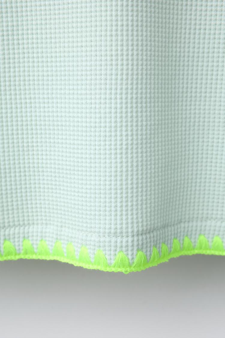 Футболка в рубчик с круглым вырезом и короткими рукавами. Вышивка в виде цветов спереди и контрастная неоновая строчка.