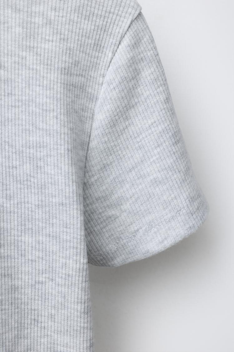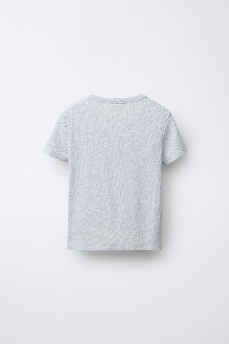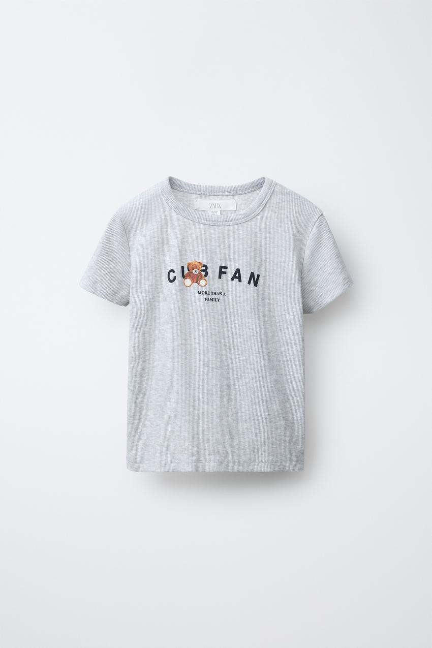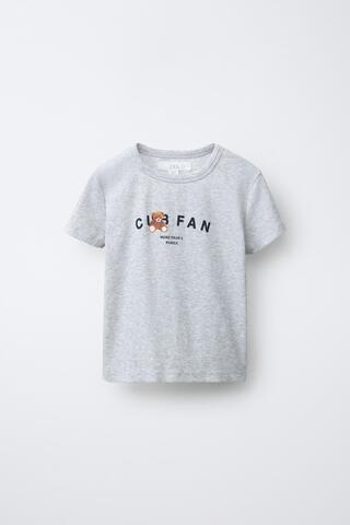 ZARA ФУТБОЛКА В РУБЧИК С ПРИНТОМ «МЕДВЕДЬ», СЕРЫЙ МЕЛАНЖ