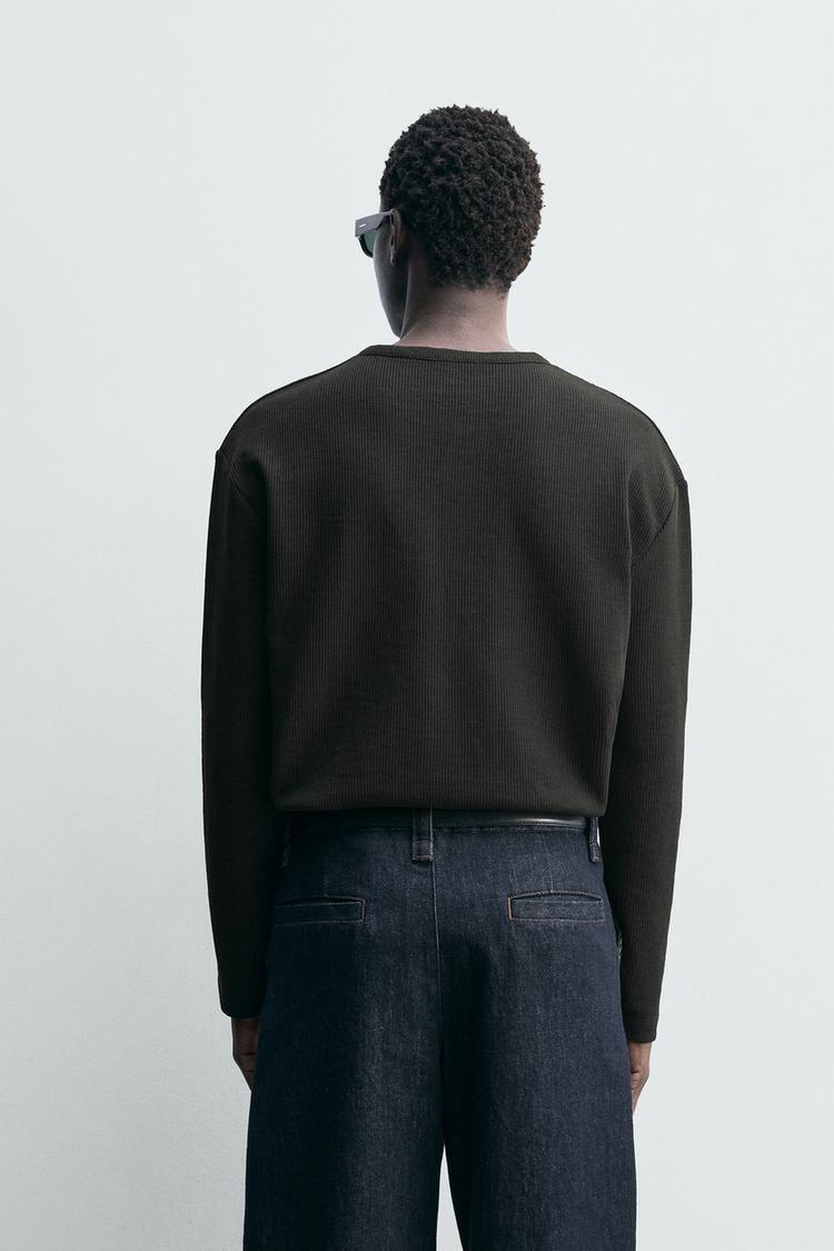 ZARA ФУТБОЛКА В РУБЧИК С ВОРОТНИКОМ НА КНОПКАХ, ЧЕРНЫЙ