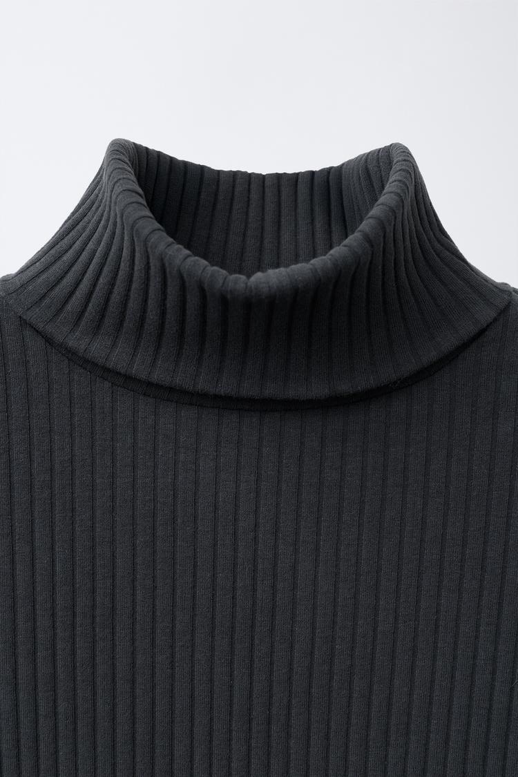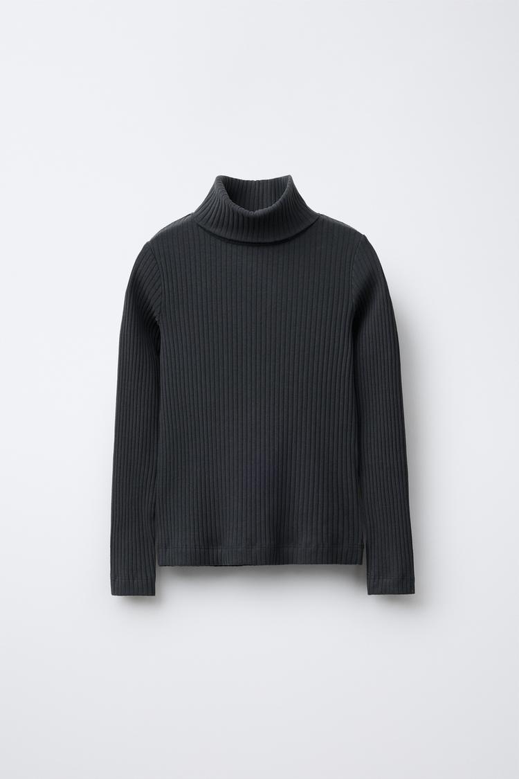 ZARA ФУТБОЛКА В РУБЧИК С ВОРОТНИКОМ-СТОЙКОЙ, АНТРАЦИТОВО-СЕРЫЙ