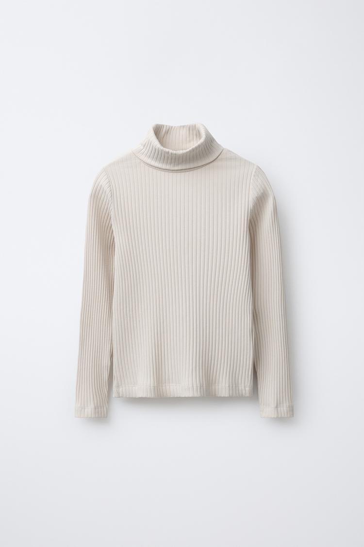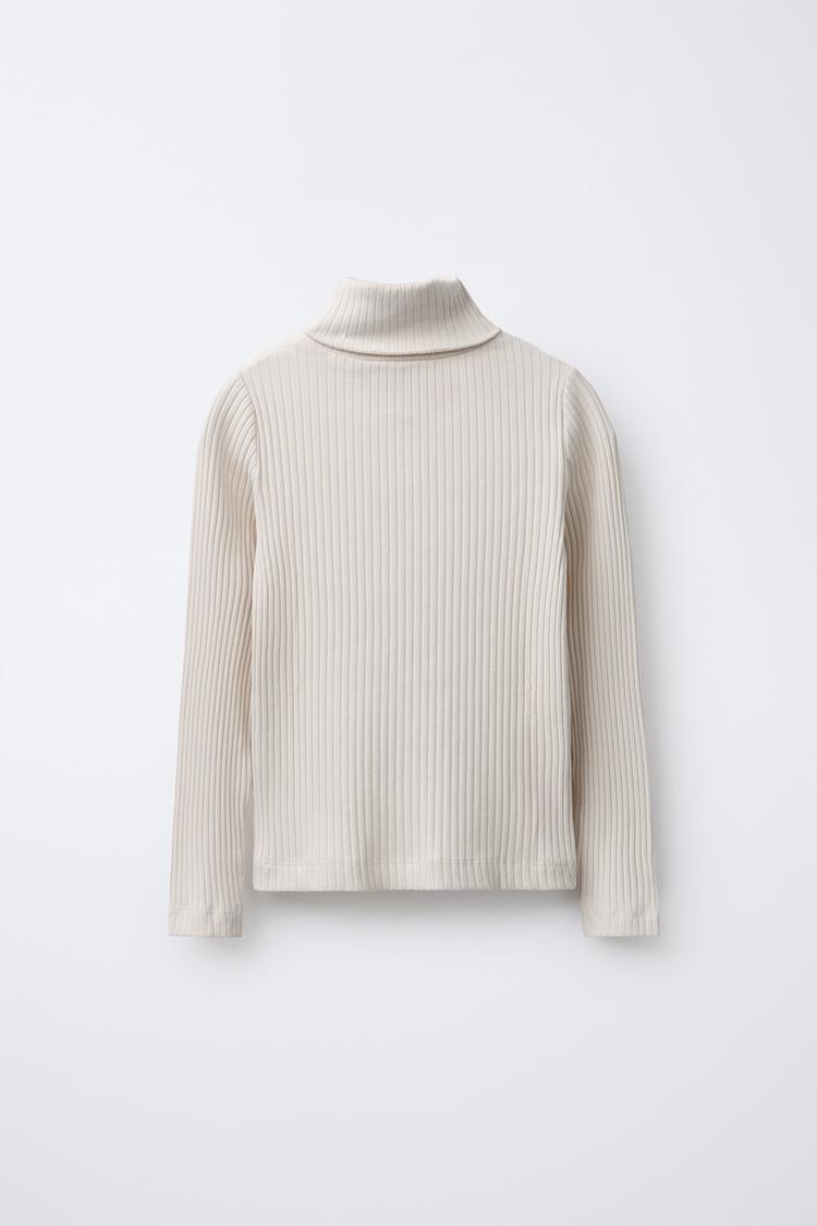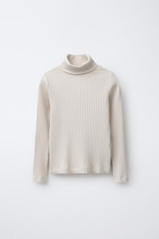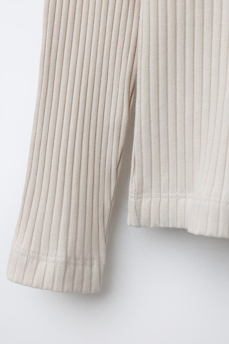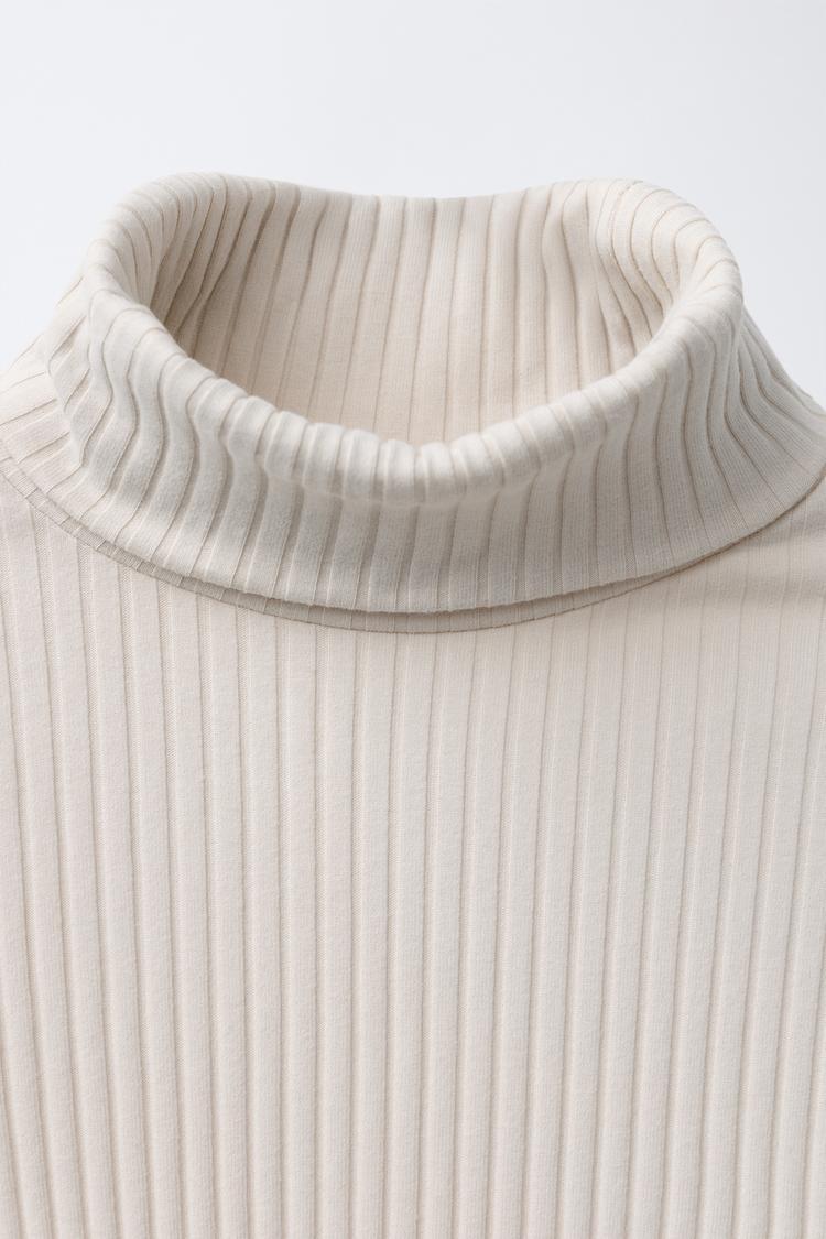 ZARA ФУТБОЛКА В РУБЧИК С ВОРОТНИКОМ-СТОЙКОЙ, ЭКРЮ