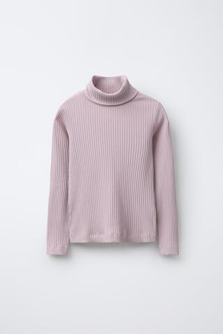 ZARA ФУТБОЛКА В РУБЧИК С ВОРОТНИКОМ-СТОЙКОЙ, РОЗОВЫЙ