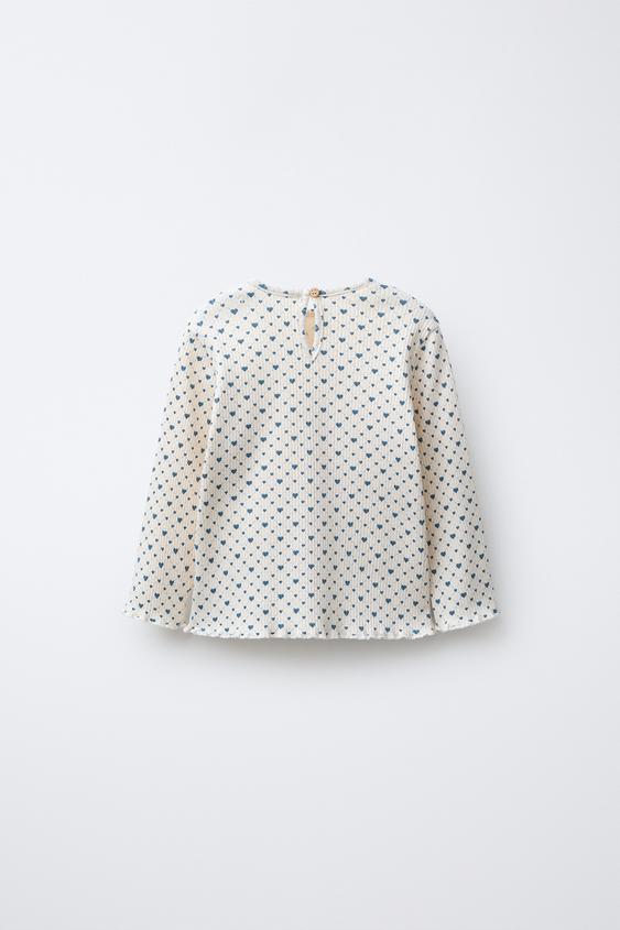 Футболка с круглым вырезом и длинными рукавами. Отделка в рубчик. Принт с бантами. Ткань 48% хлопок.