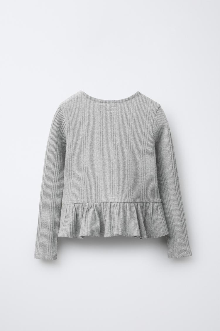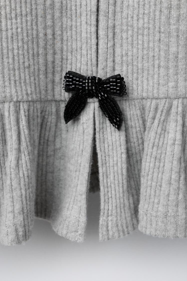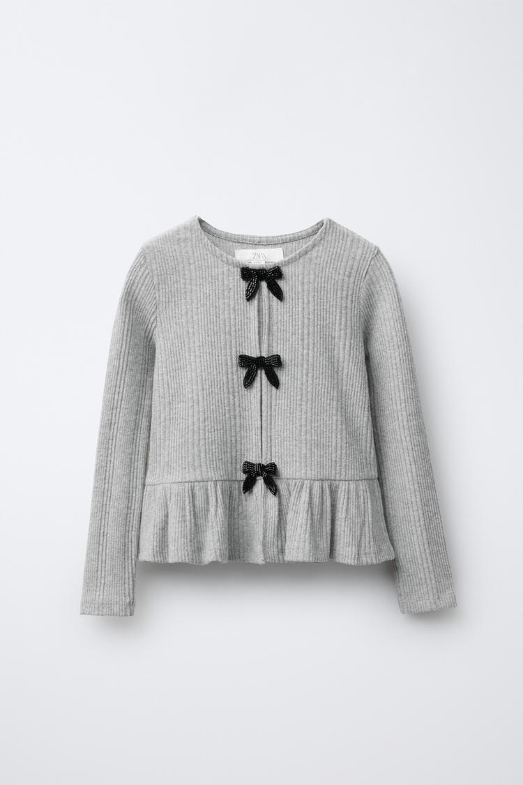ZARA ФУТБОЛКА В РУБЧИК SOFT TOUCH С БАНТАМИ, СЕРЫЙ МЕЛАНЖ