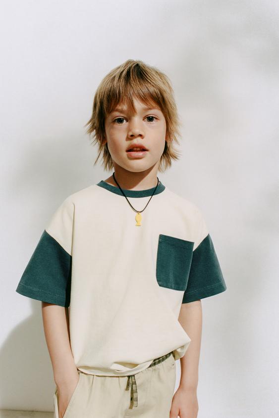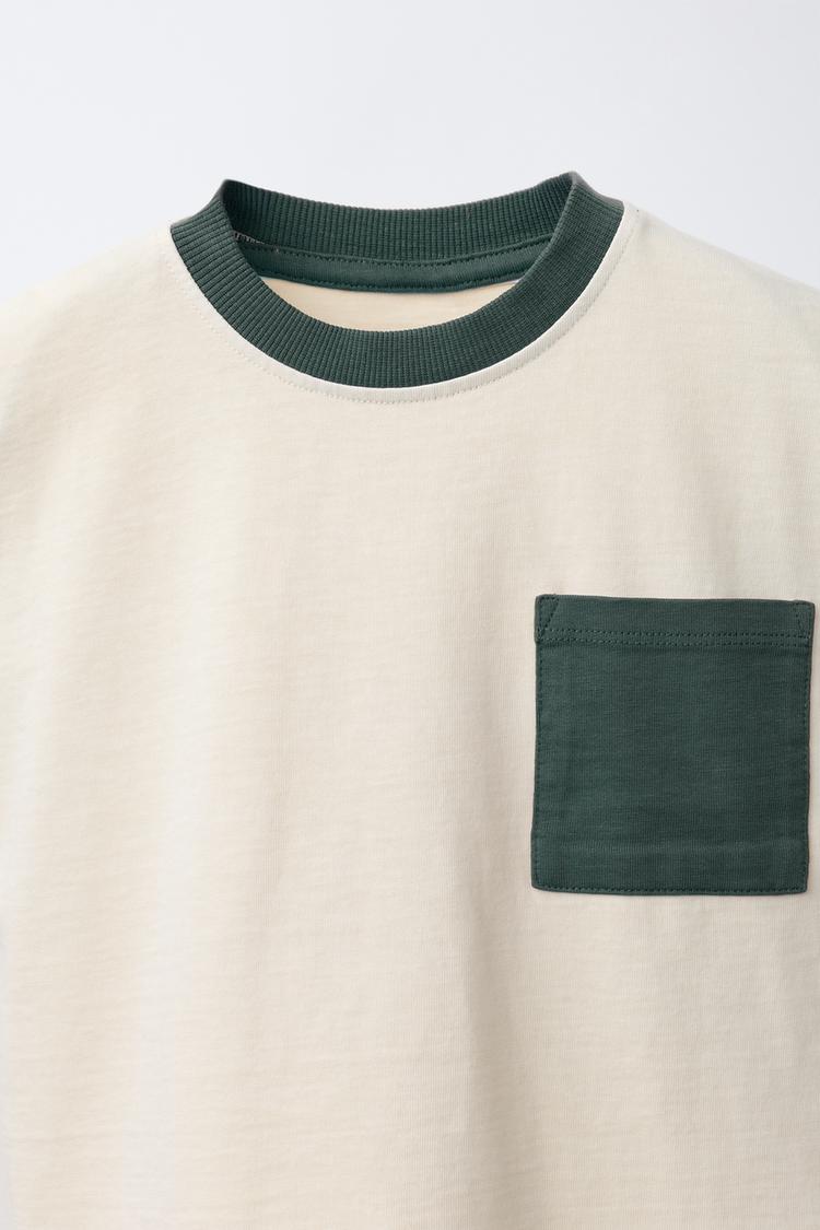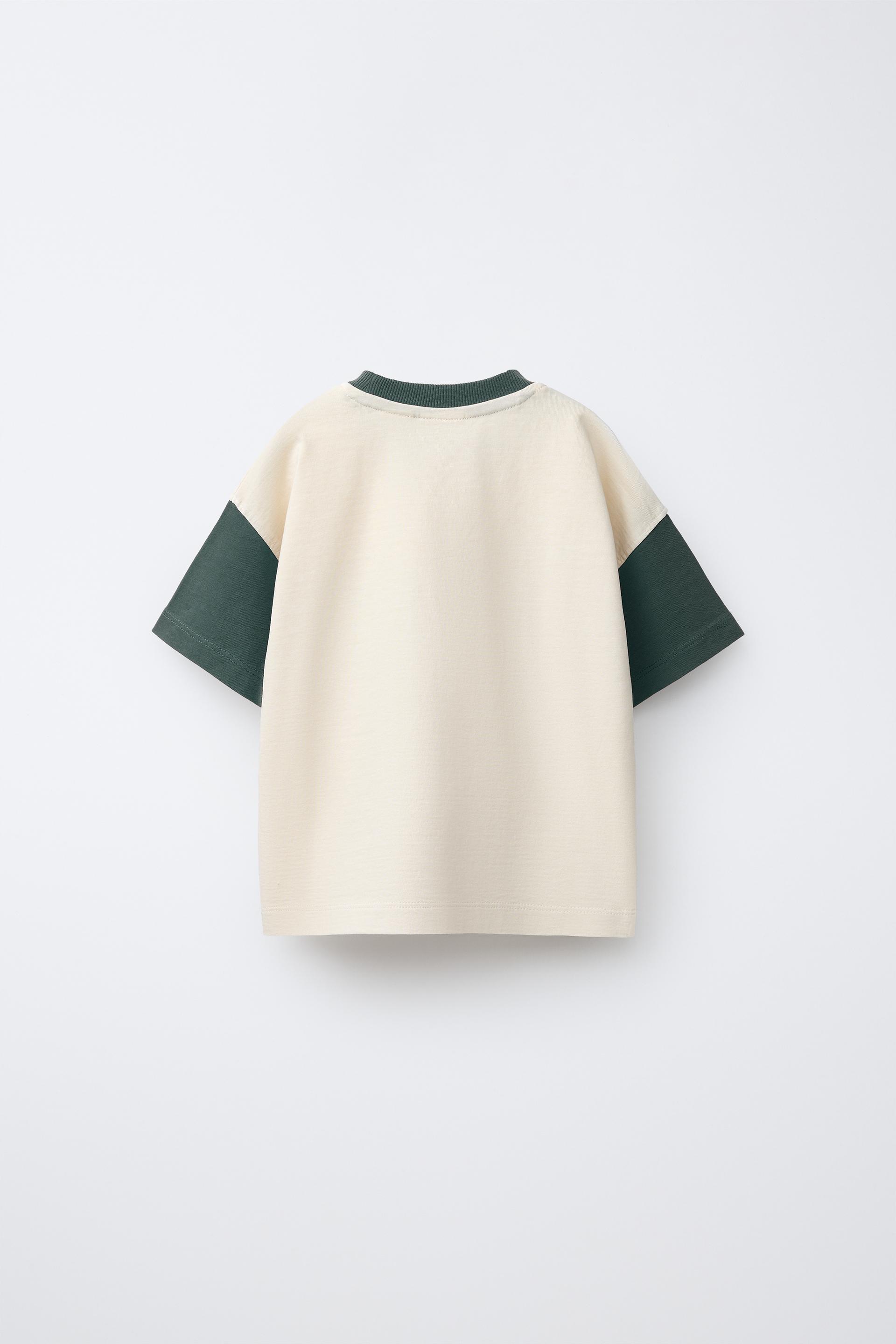 ZARA ФУТБОЛКА В СТИЛЕ КОЛОР-БЛОК, МЯГКИЙ ЗЕЛЕНЫЙ