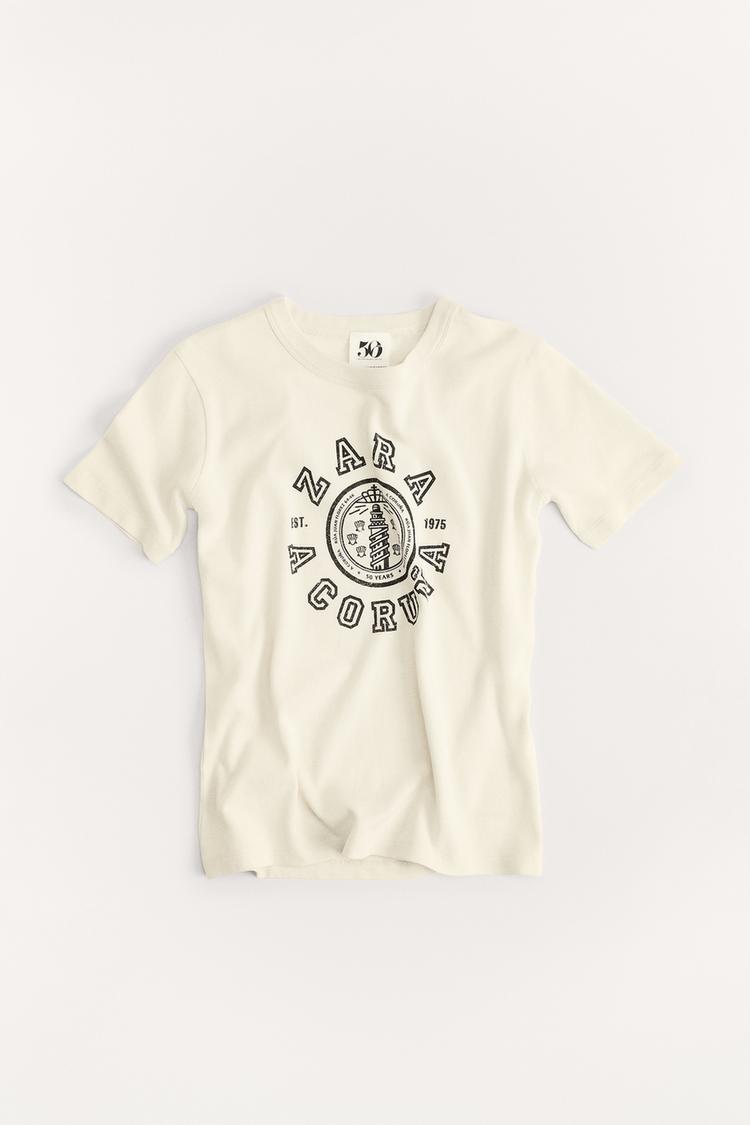 ZARA ФУТБОЛКА В СТИЛЕ ПРЕППИ «50TH ANNIVERSARY», ЖЕЛТОВАТО-БЕЛЫЙ