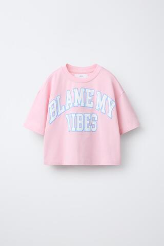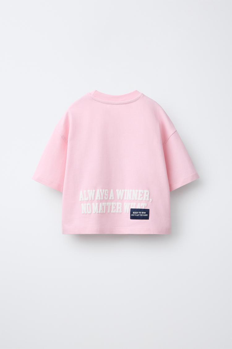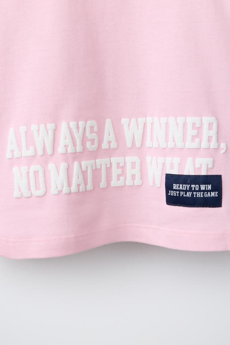 ZARA ФУТБОЛКА В СТИЛЕ ПРЕППИ С НАДПИСЬЮ, РОЗОВЫЙ/БЕЛЫЙ