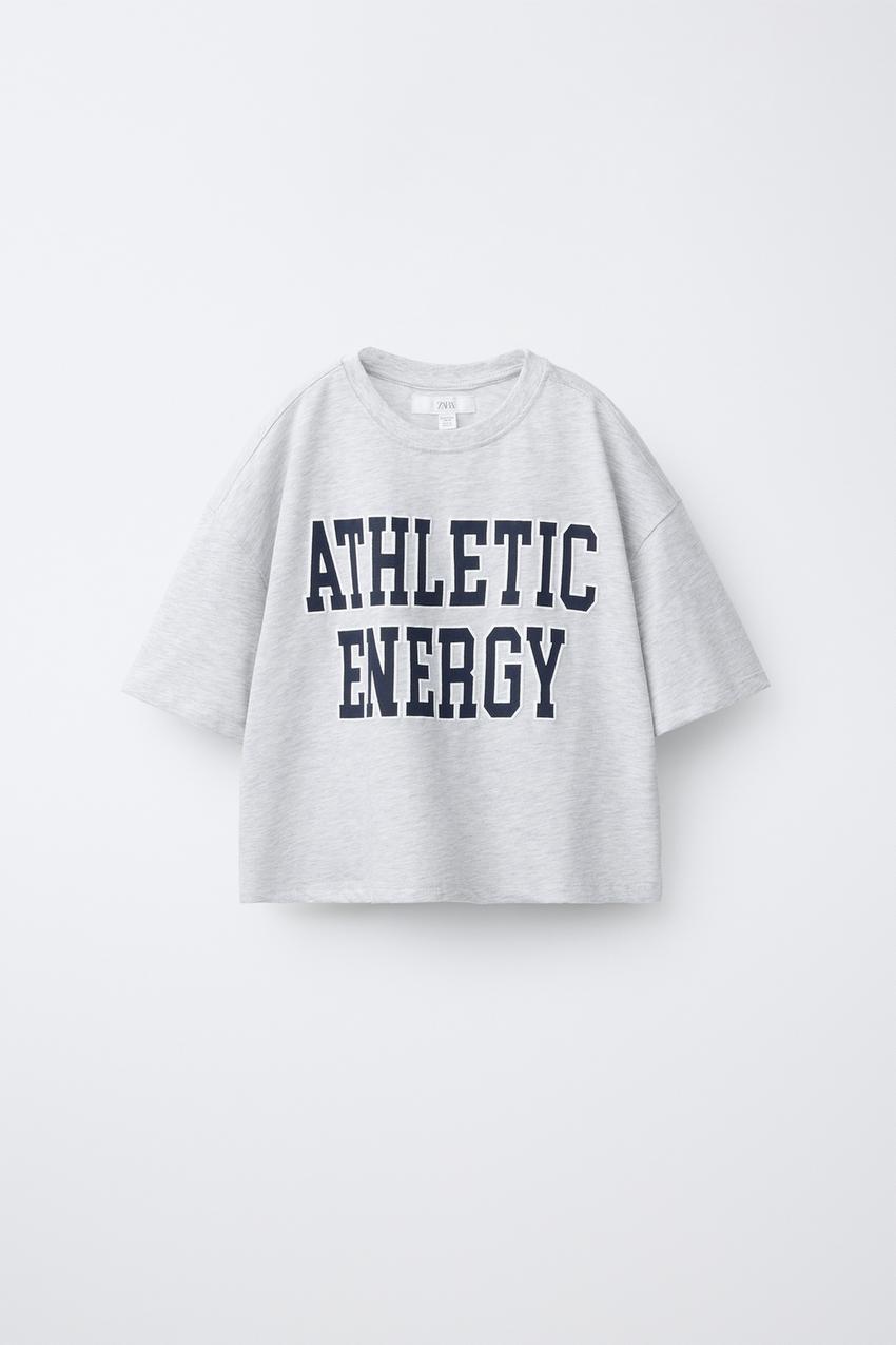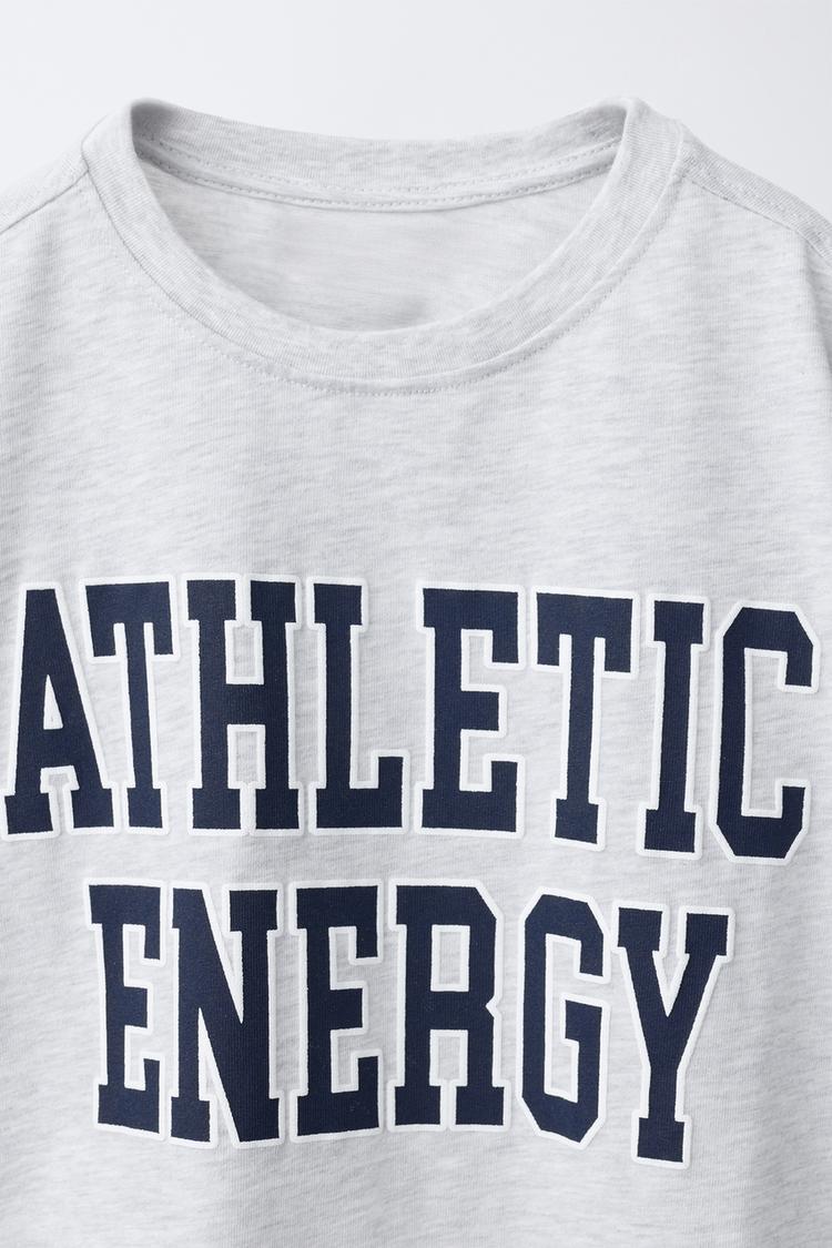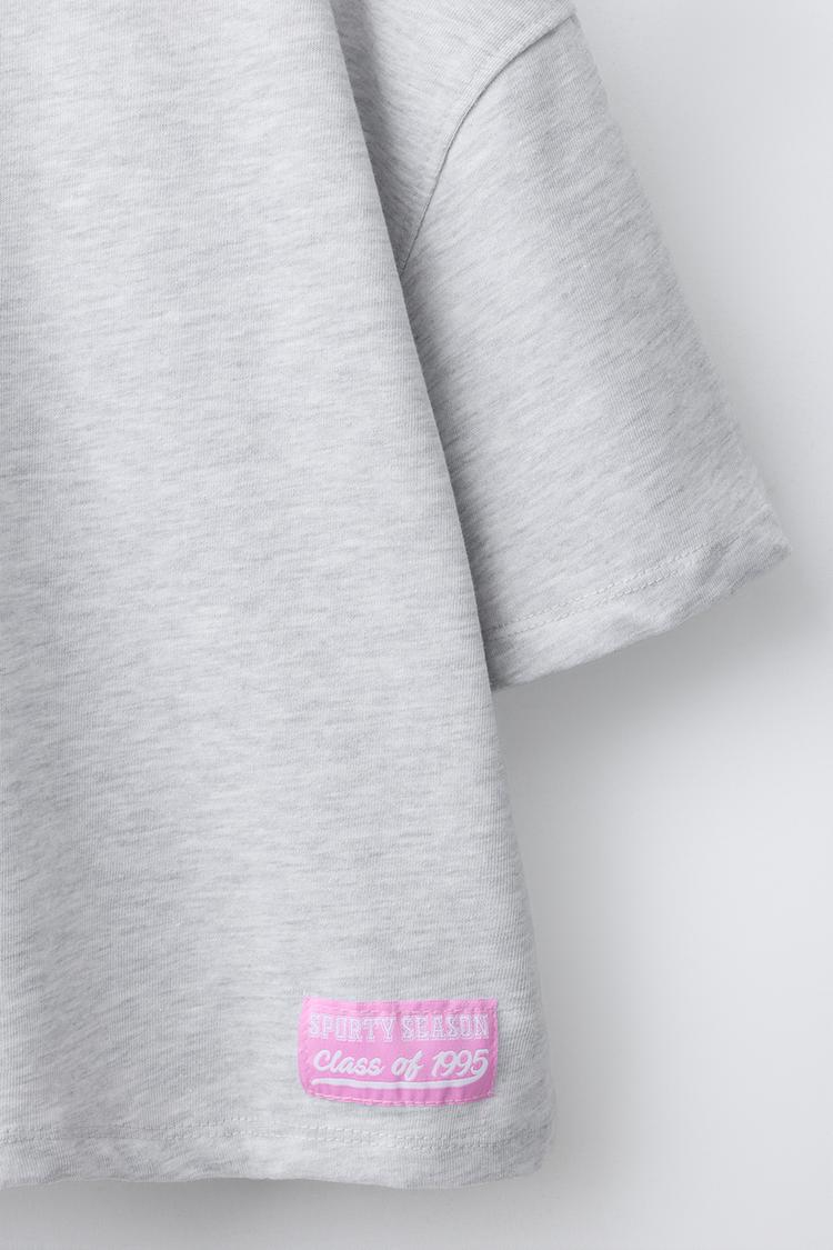 ZARA ФУТБОЛКА В СТИЛЕ ПРЕППИ С НАДПИСЬЮ, СЕРЫЙ МЕЛАНЖ