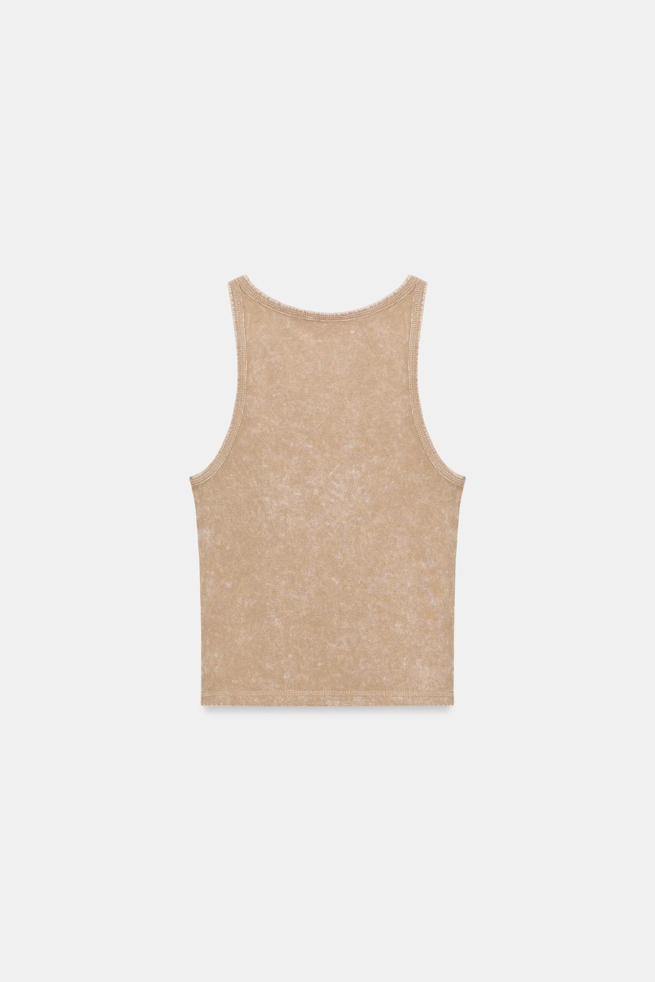 ZARA ФУТБОЛКА В СТИЛЕ РУСТИК НА БРЕТЕЛЯХ, ПЕСОЧНЫЙ/КОРИЧНЕВЫЙ
