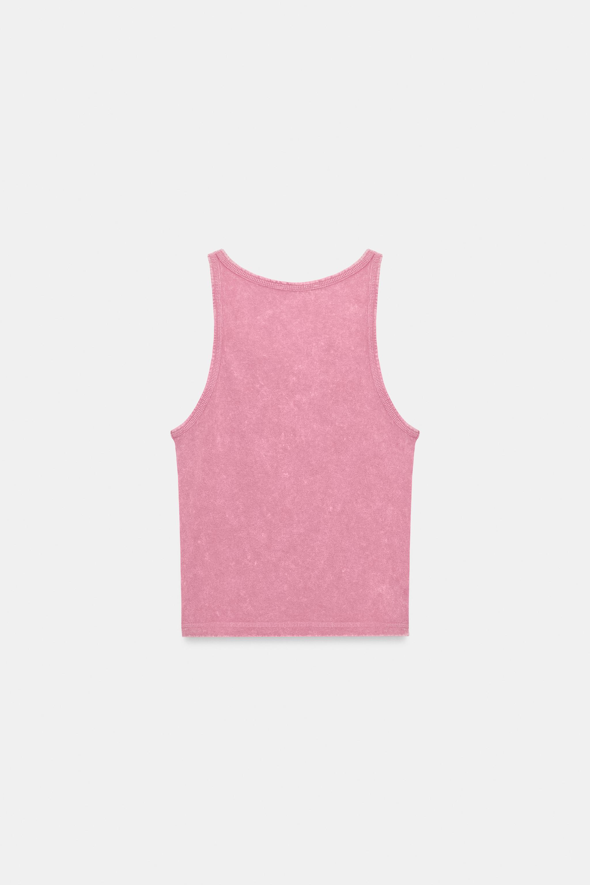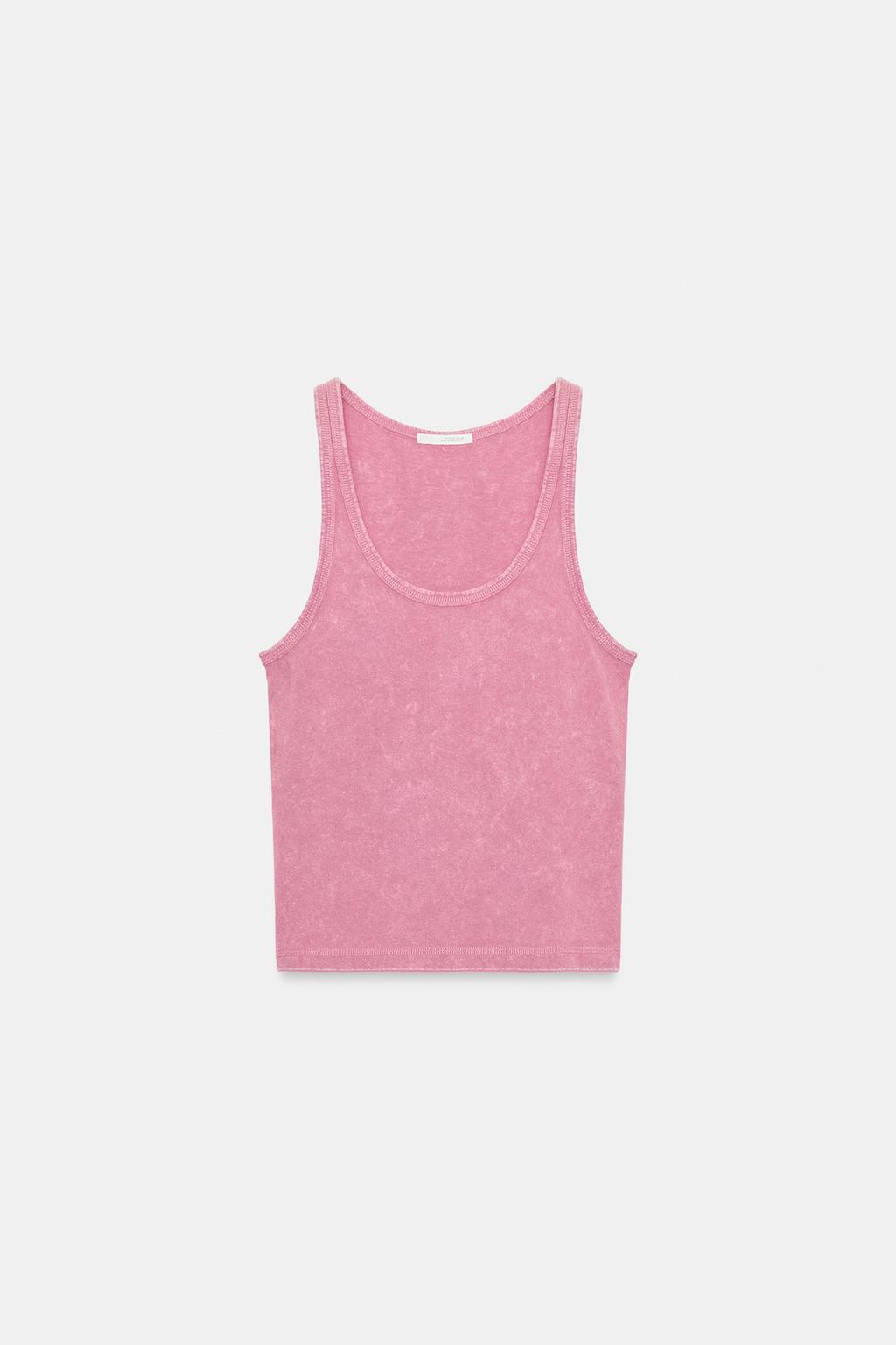 ZARA ФУТБОЛКА В СТИЛЕ РУСТИК НА БРЕТЕЛЯХ, ЦВЕТ РОЗОВОГО МЕЛА