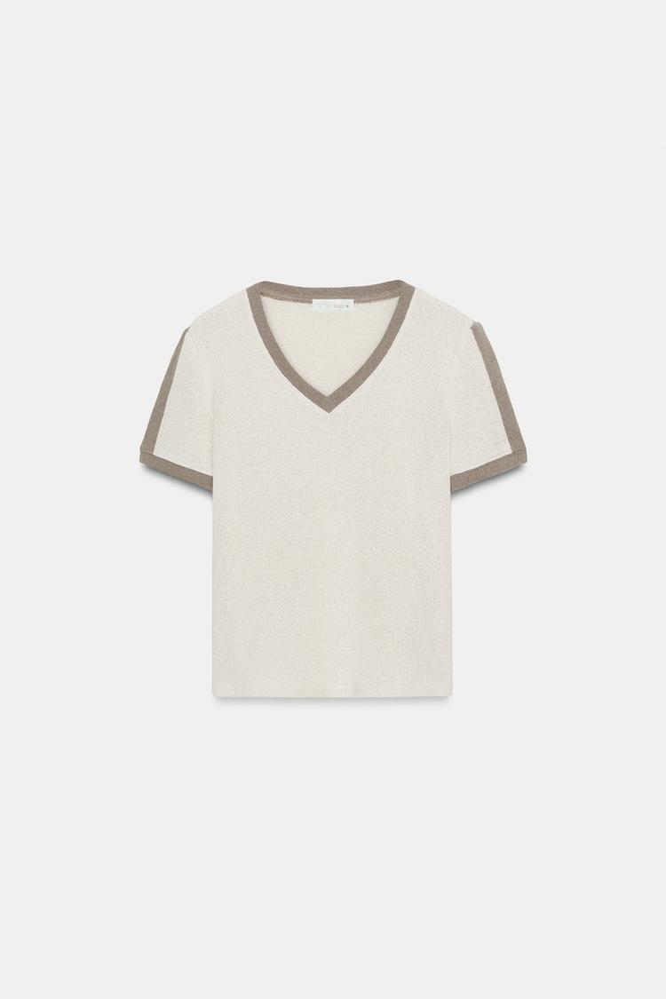 ZARA ФУТБОЛКА В СТИЛЕ РУСТИК С КОНТРАСТНЫМИ ДЕТАЛЯМИ, ЭКРЮ/БЕЖЕВЫЙ