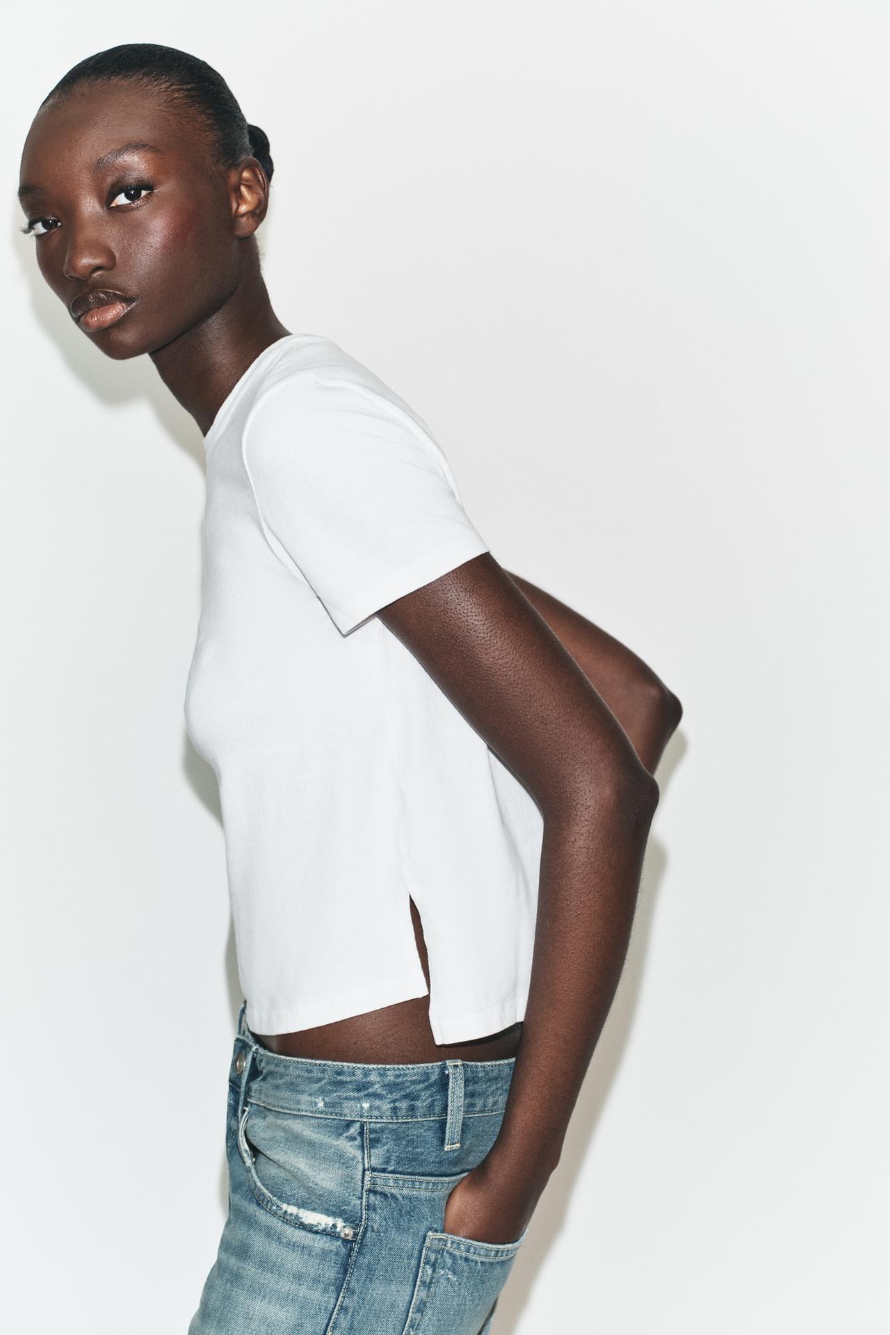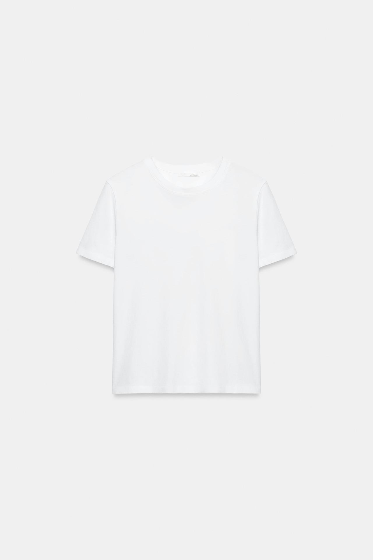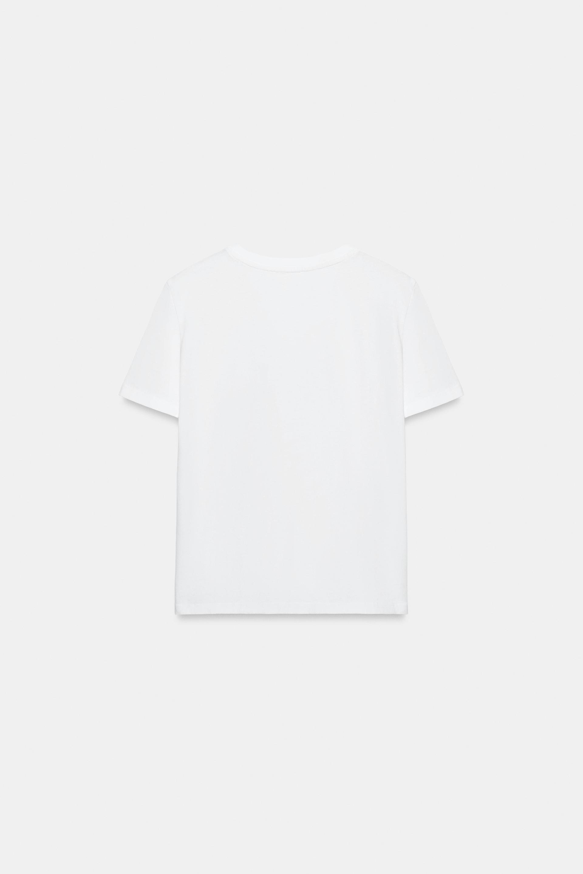 ZARA ФУТБОЛКА В СТИЛЕ РУСТИК С КОРОТКИМИ РУКАВАМИ, БЕЛЫЙ