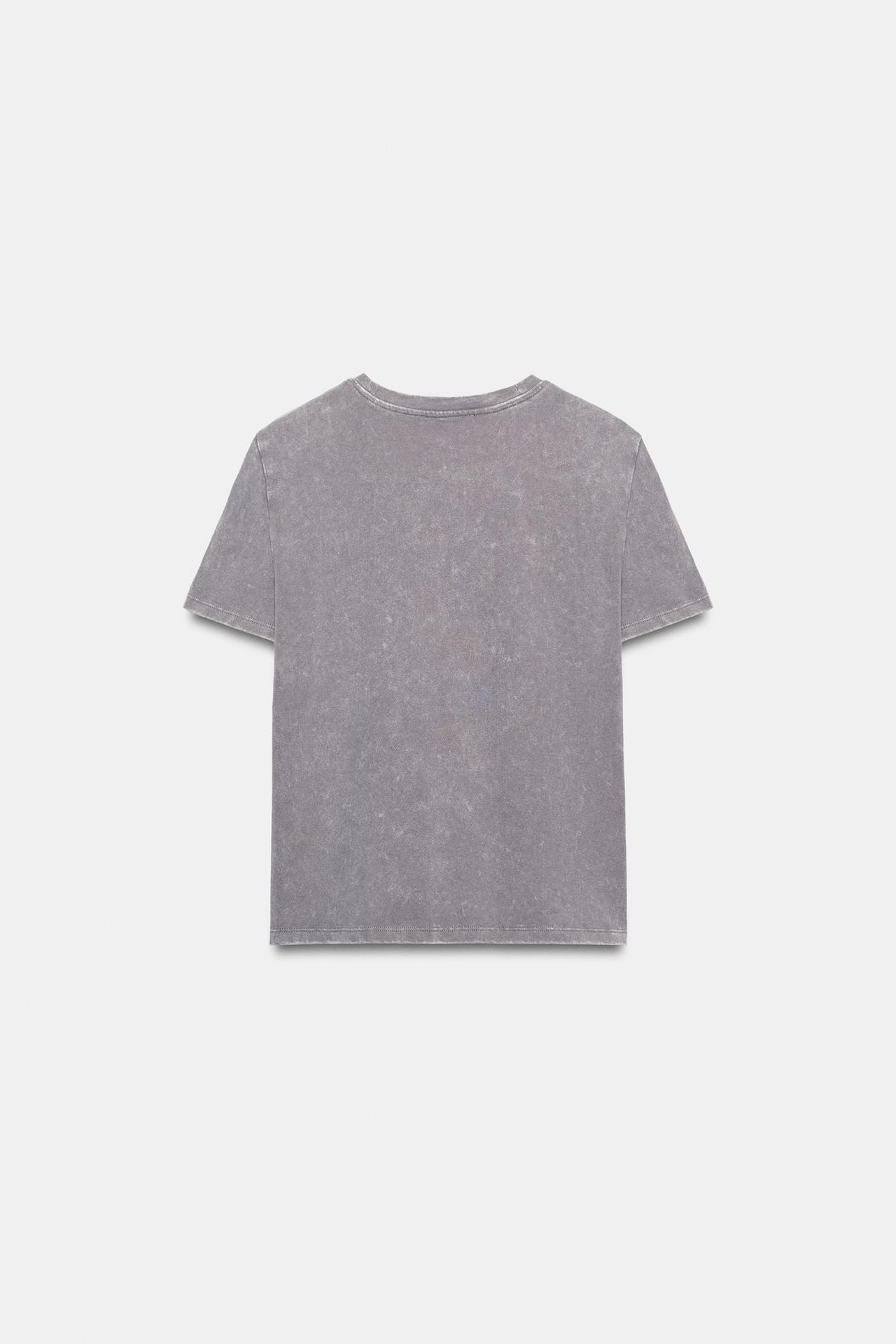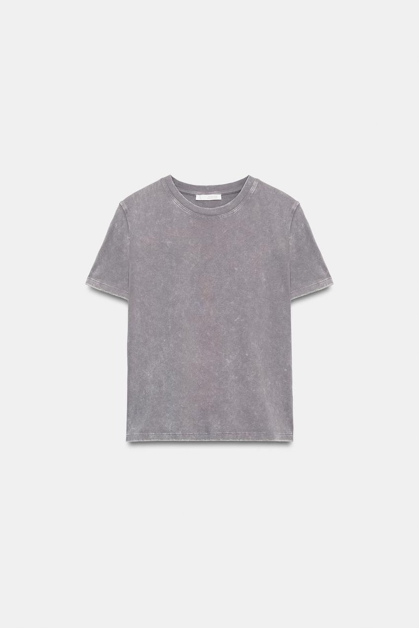 ZARA ФУТБОЛКА В СТИЛЕ РУСТИК С КОРОТКИМИ РУКАВАМИ, БЛЕДНО-ФИОЛЕТОАВЫЙ
