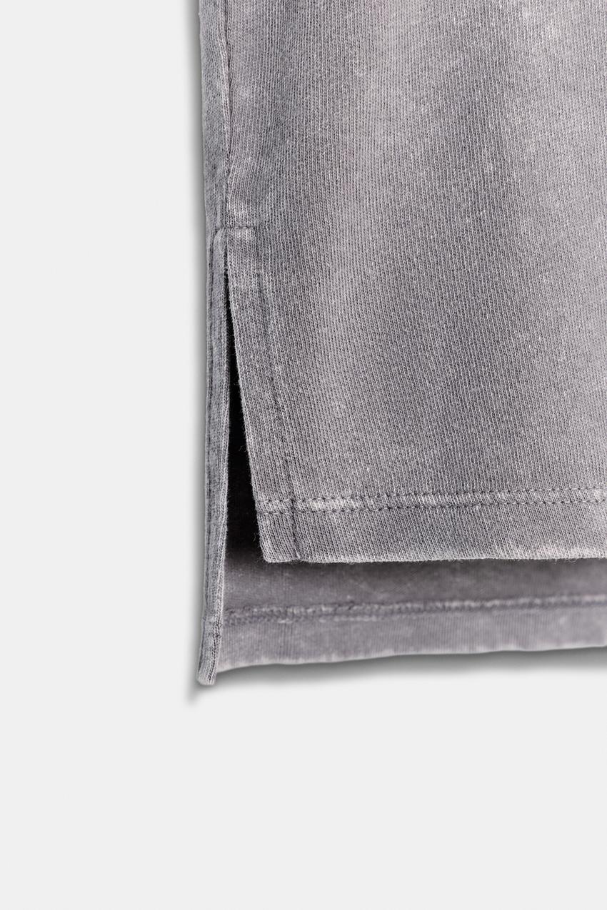 Футболка из хлопковой пряжи. Круглый вырез и короткие рукава. Асимметричный низ с боковыми разрезами.