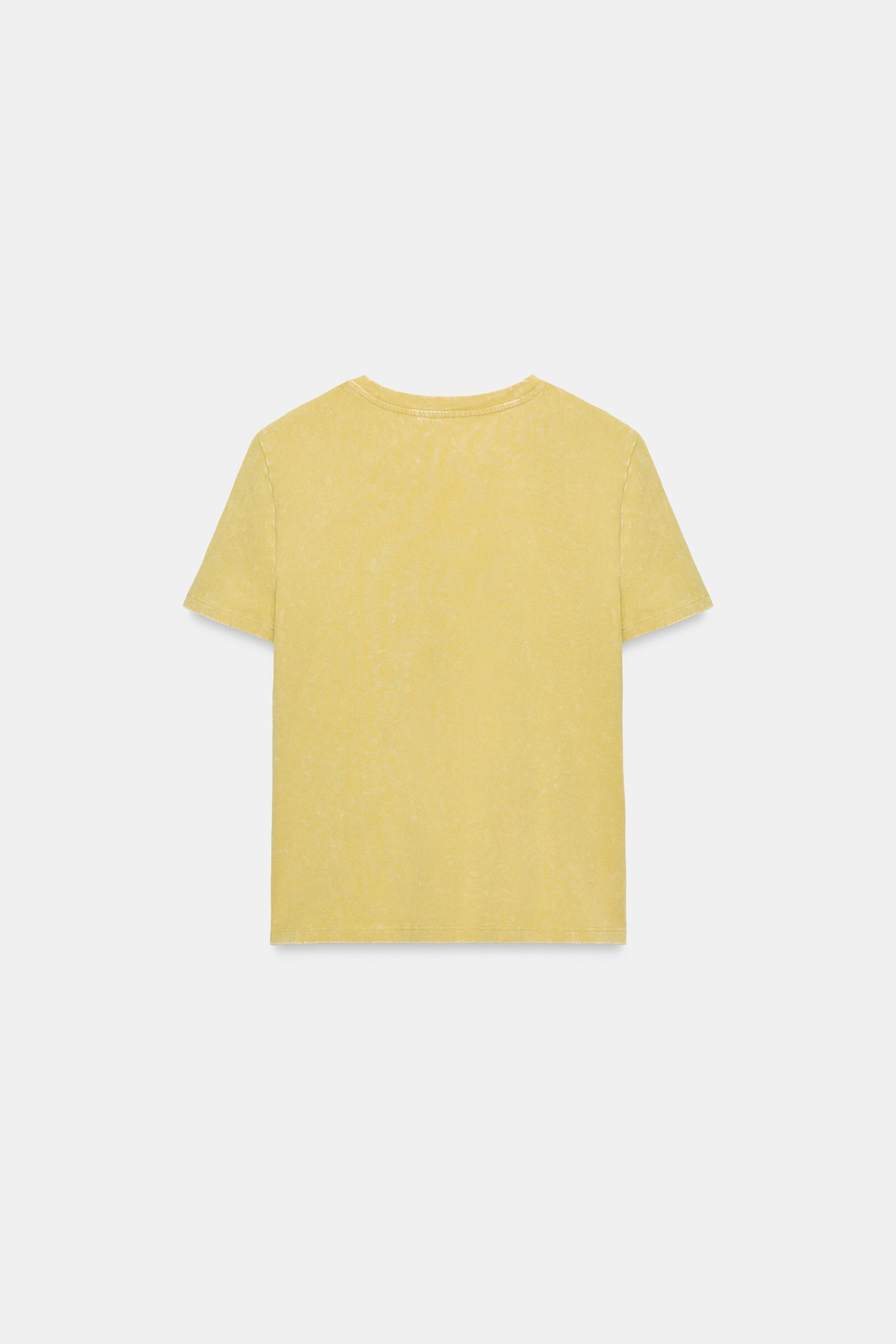 ZARA ФУТБОЛКА В СТИЛЕ РУСТИК С КОРОТКИМИ РУКАВАМИ, ЖЕЛТЫЙ