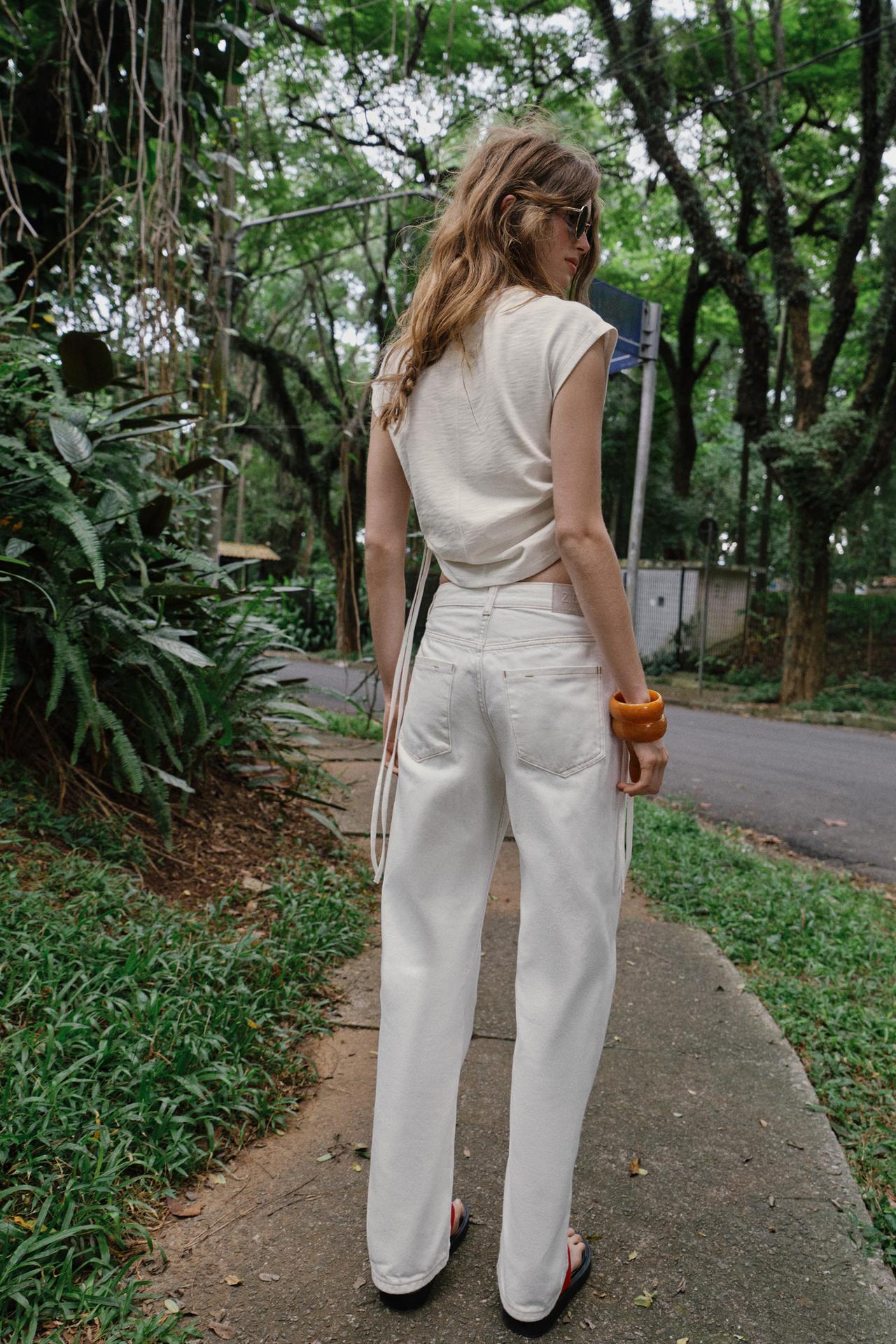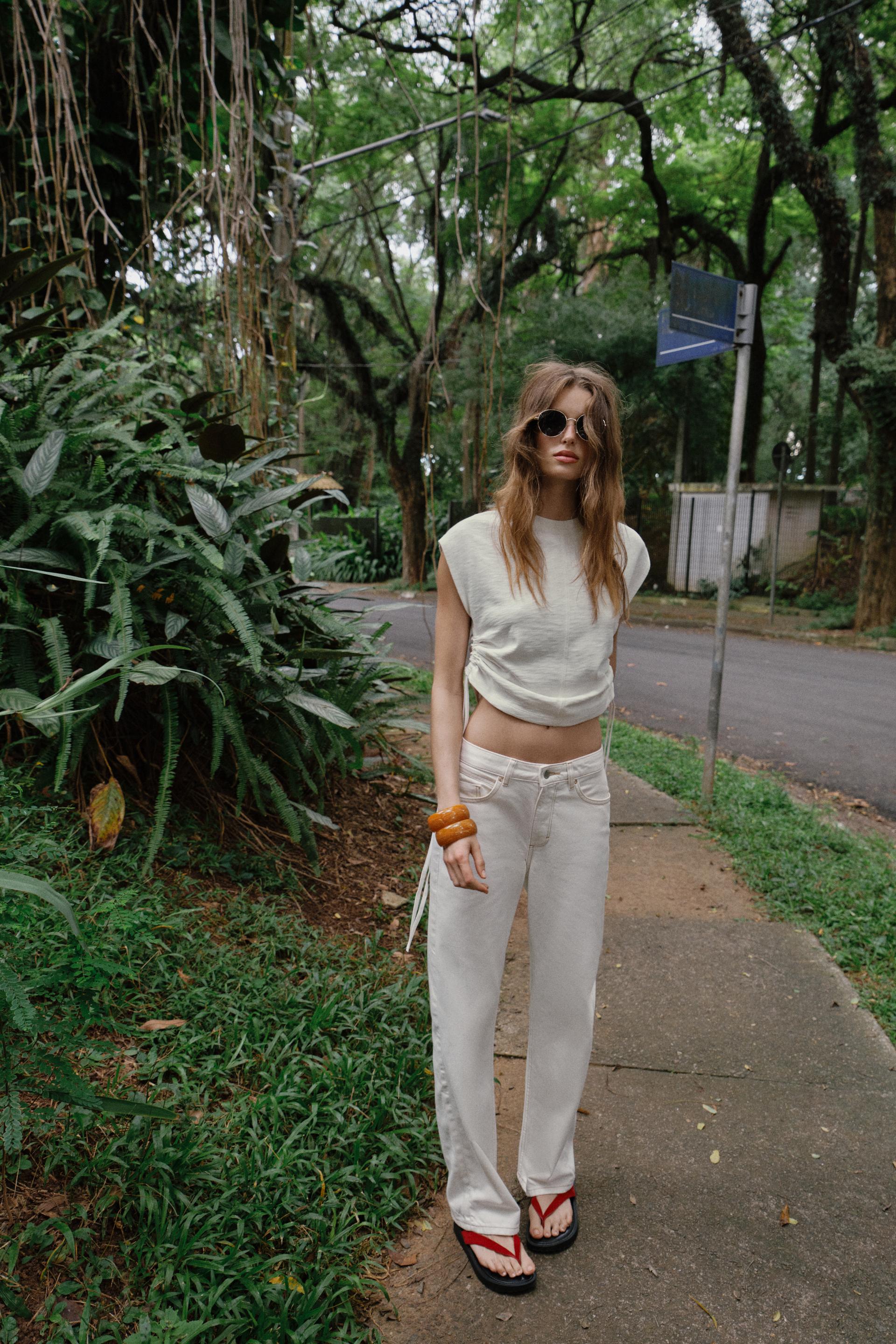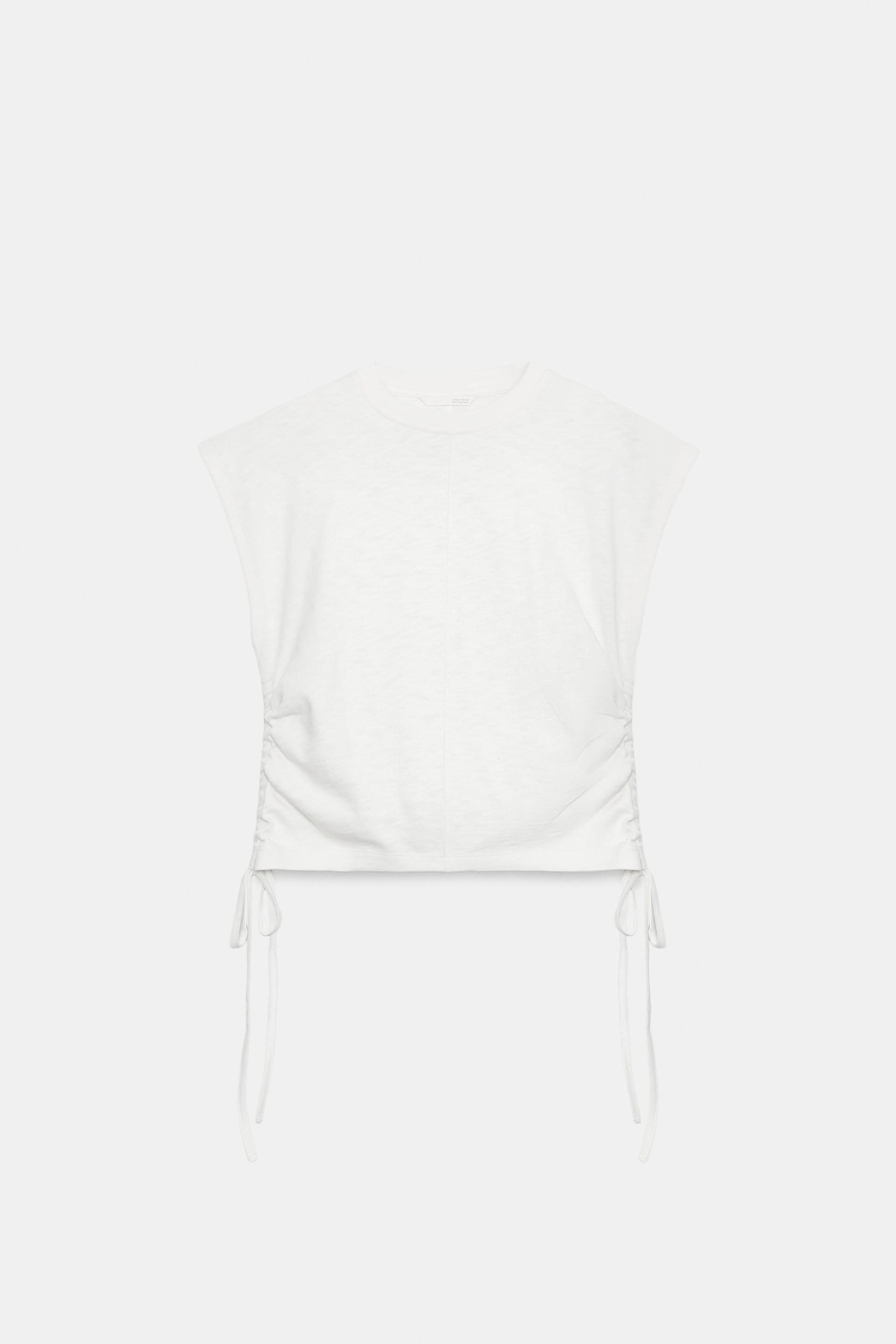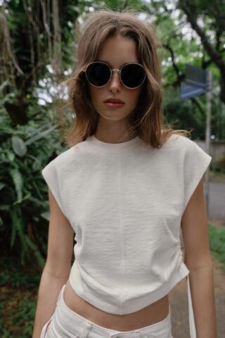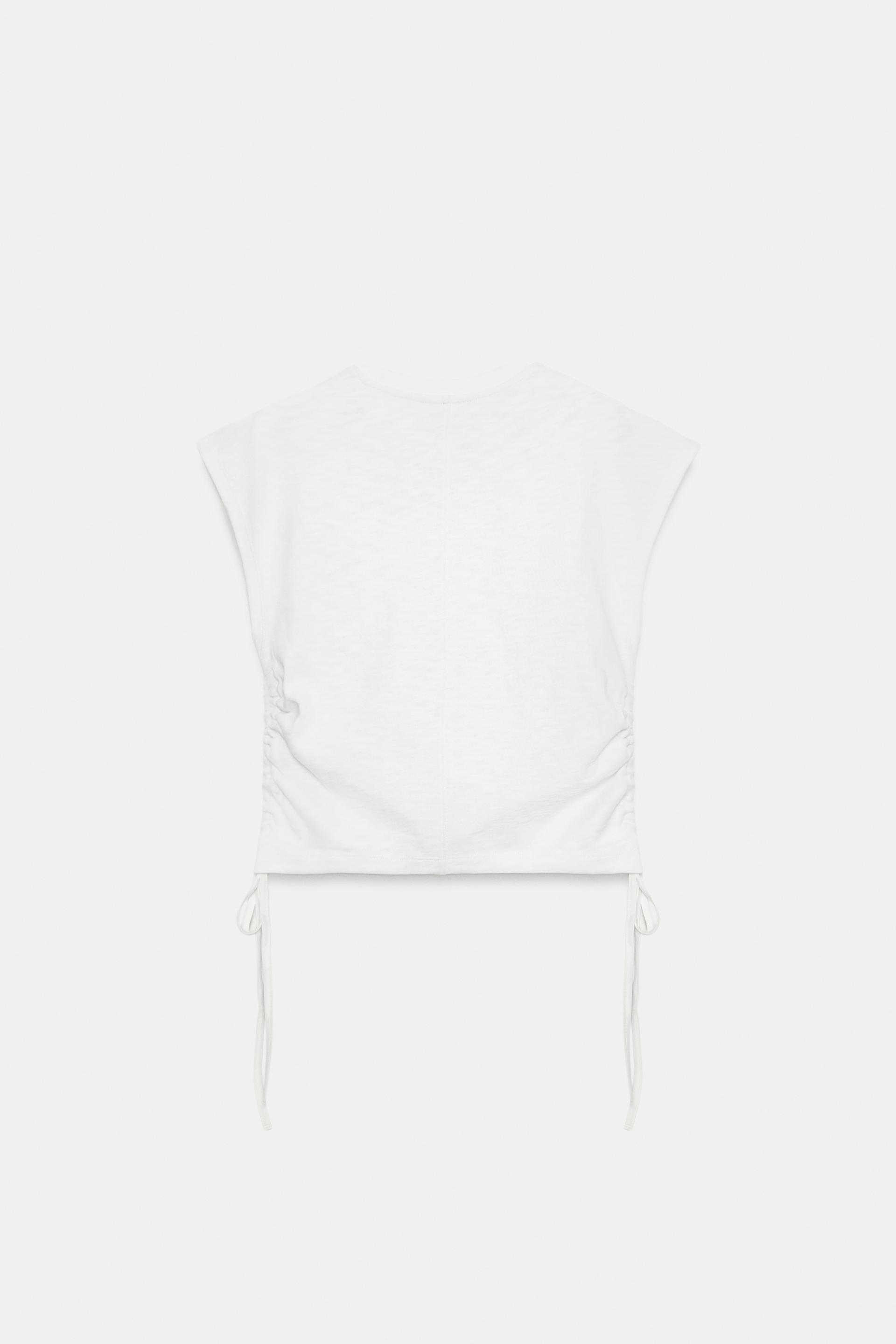 ZARA ФУТБОЛКА В СТИЛЕ РУСТИК СО СБОРКАМИ, БЕЛЫЙ