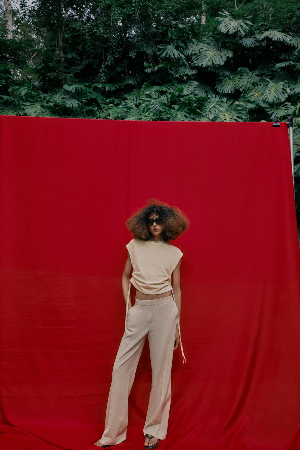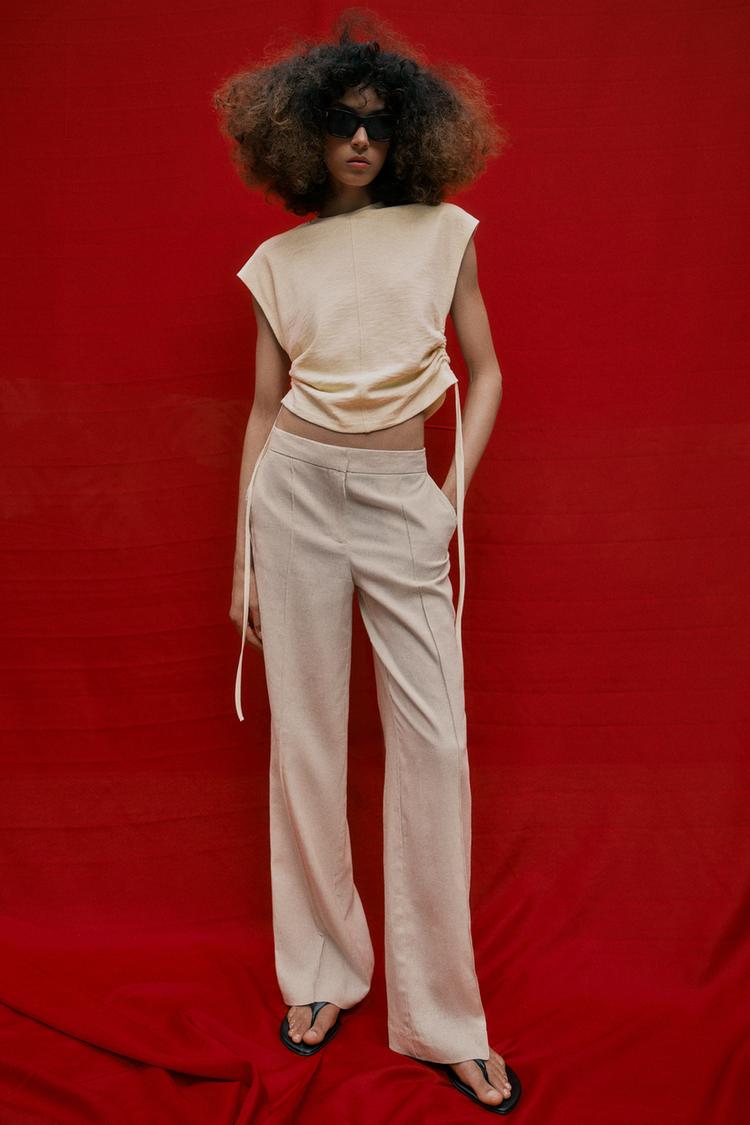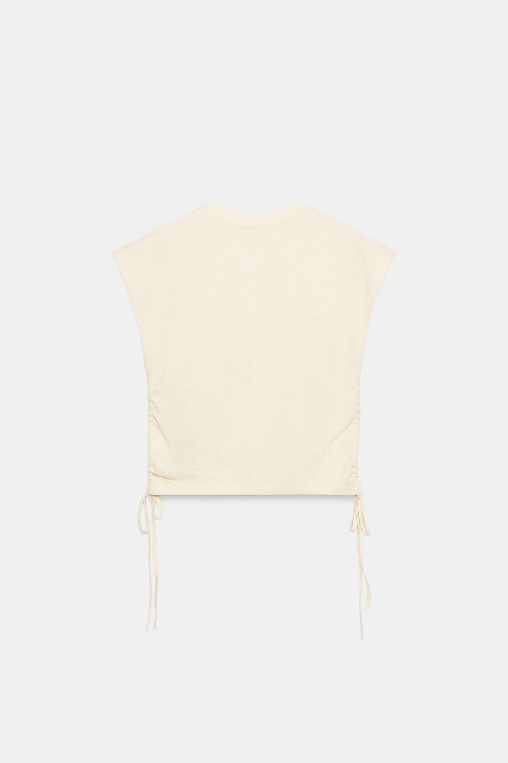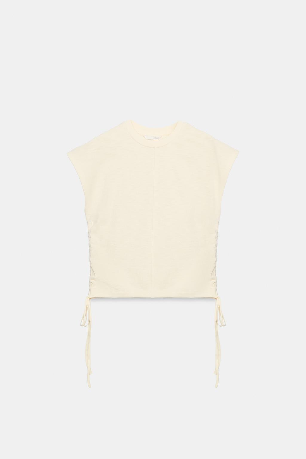 ZARA ФУТБОЛКА В СТИЛЕ РУСТИК СО СБОРКАМИ, ЦВЕТ СЛИВОЧНОГО МАСЛА
