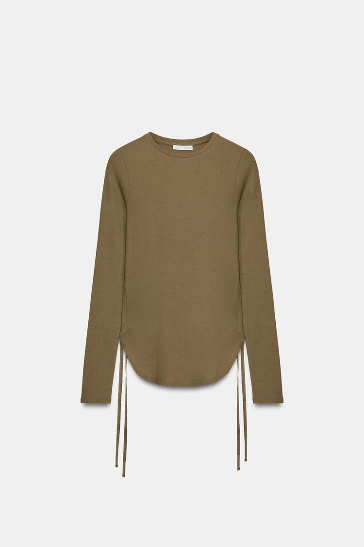 ZARA ФУТБОЛКА В СТИЛЕ РУСТИК СО ШНУРОВКОЙ, ТАБАЧНО-КОРИЧНЕВЫЙ