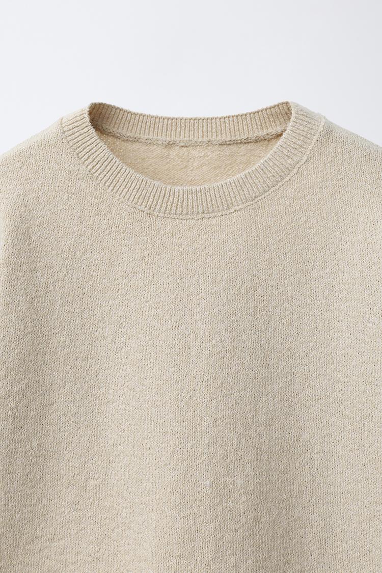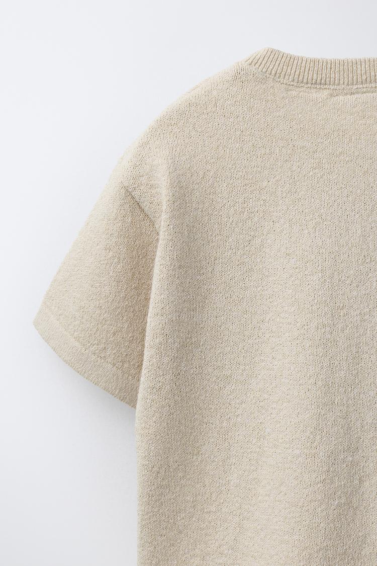 ZARA ФУТБОЛКА В СТИЛЕ РУСТИК, СВЕТЛО-БЕЖЕВЫЙ