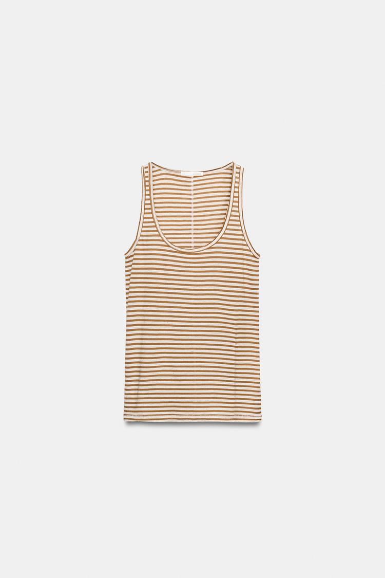 ZARA ФУТБОЛКА В СТИЛЕ РУСТИК В ПОЛОСКУ, ЭКРЮ